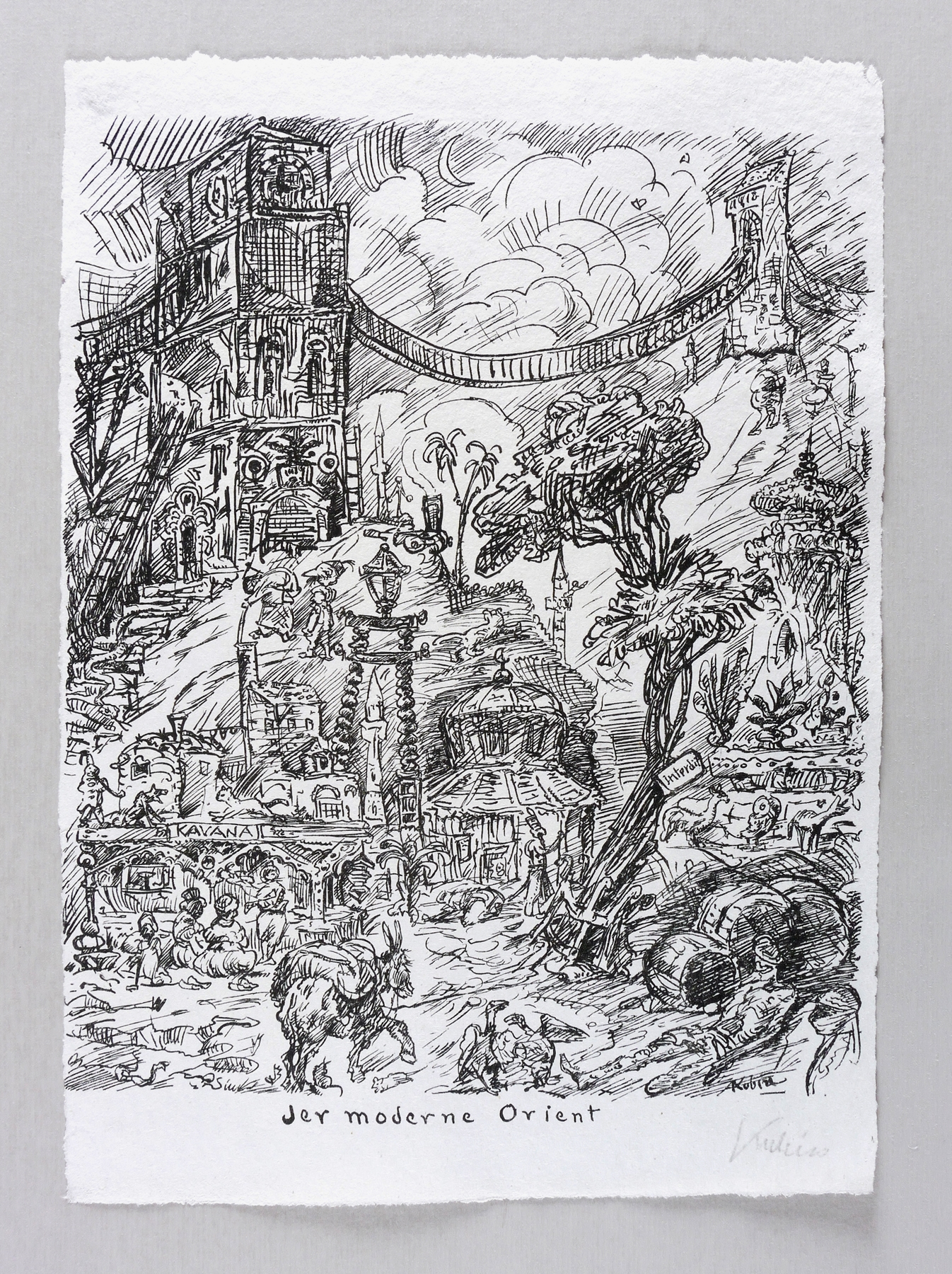 Raabe 168. – Rechts unten in Bleistift signiert: ″Kubin″. Im Stein rechts unten nochmals Signatur: ″Kubin″. Unterhalb mittig Titel: ″Der moderne Orient″. – Tadellos erhalten. Sehr guter Zustand.