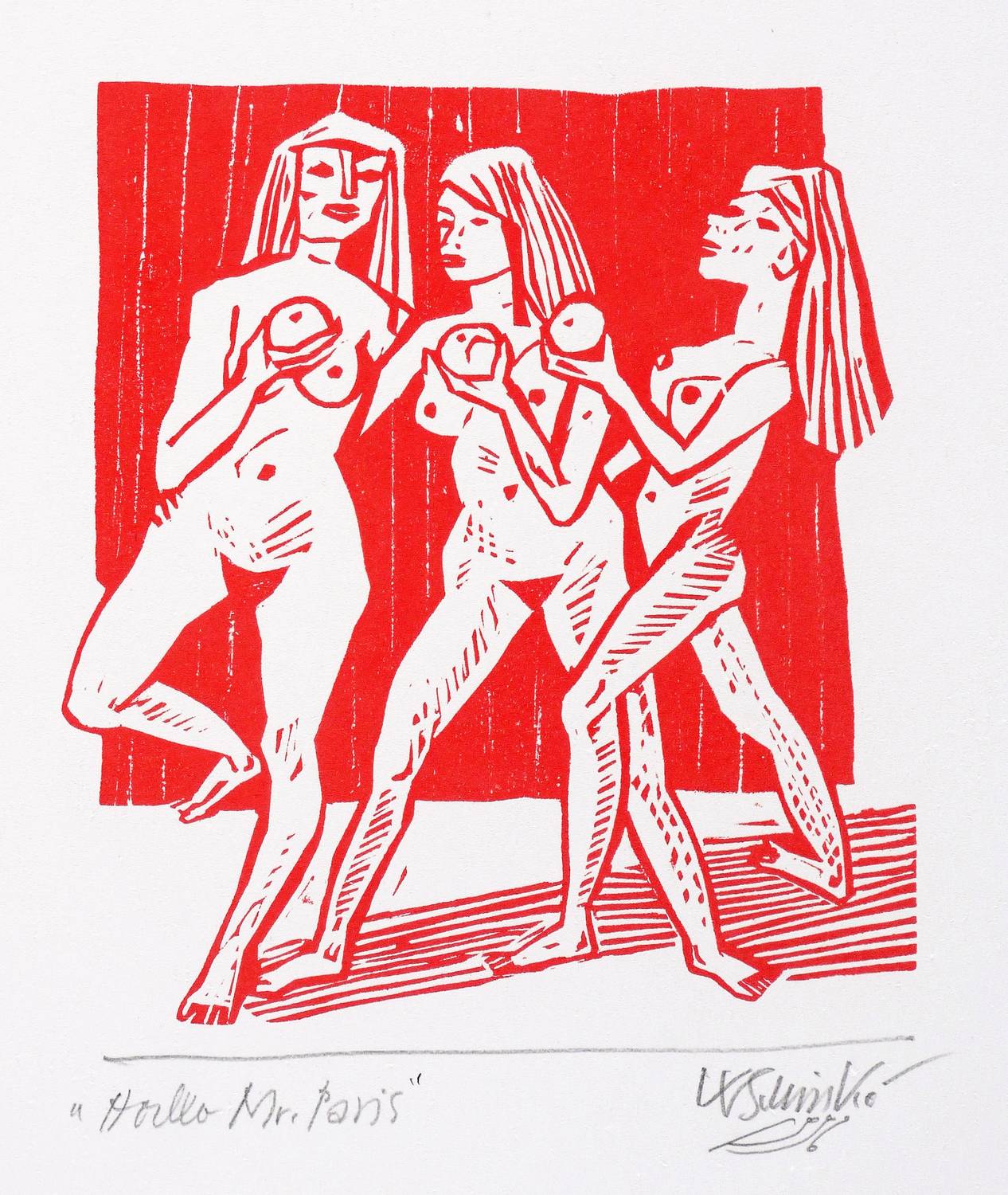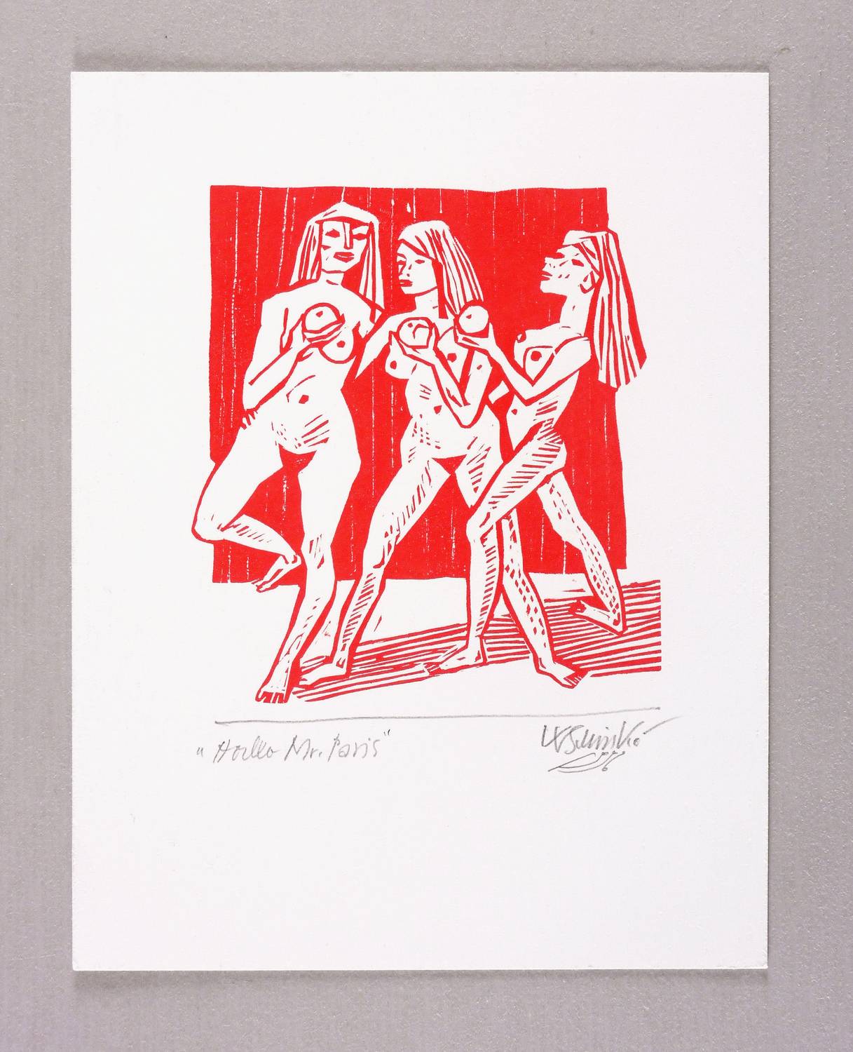Rechts unten in Bleistift signiert und datiert: ″WSchinko 1996″. Links Titel: ″Hallo Mr. Paris″. – Sehr guter Zustand.