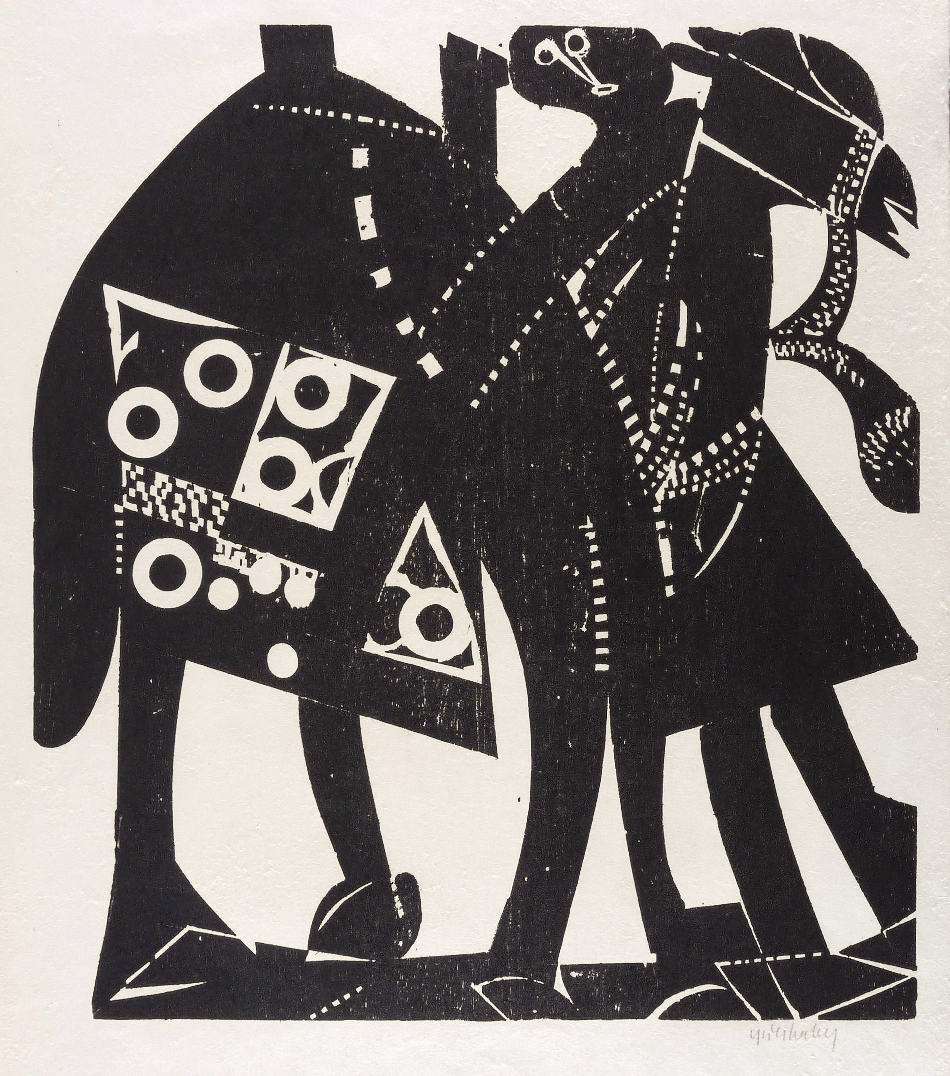 Fürst 67/46. – Rechts unten in Bleistift signiert: ″Grieshaber″. Verso Sammlernotizen. – Verwandtschaft mit dem Farbholzschnitt ″Kamel mit Schabracke″ von 1959 (WVZ Fürst 59/13) und dem einfarbigen Holzschnitt ″Kamel″ von 1960 (WVZ Fürst 60/8). – Die Auflage von 11 Exemplaren wurde laut Werkverzeichnis von Margot Fürst komplett in Rot gedruckt. Es handelt sich hier wohl um einen seltenen Vorzugsdruck. – Originalrandiges Exemplar. Sehr guter Zustand.