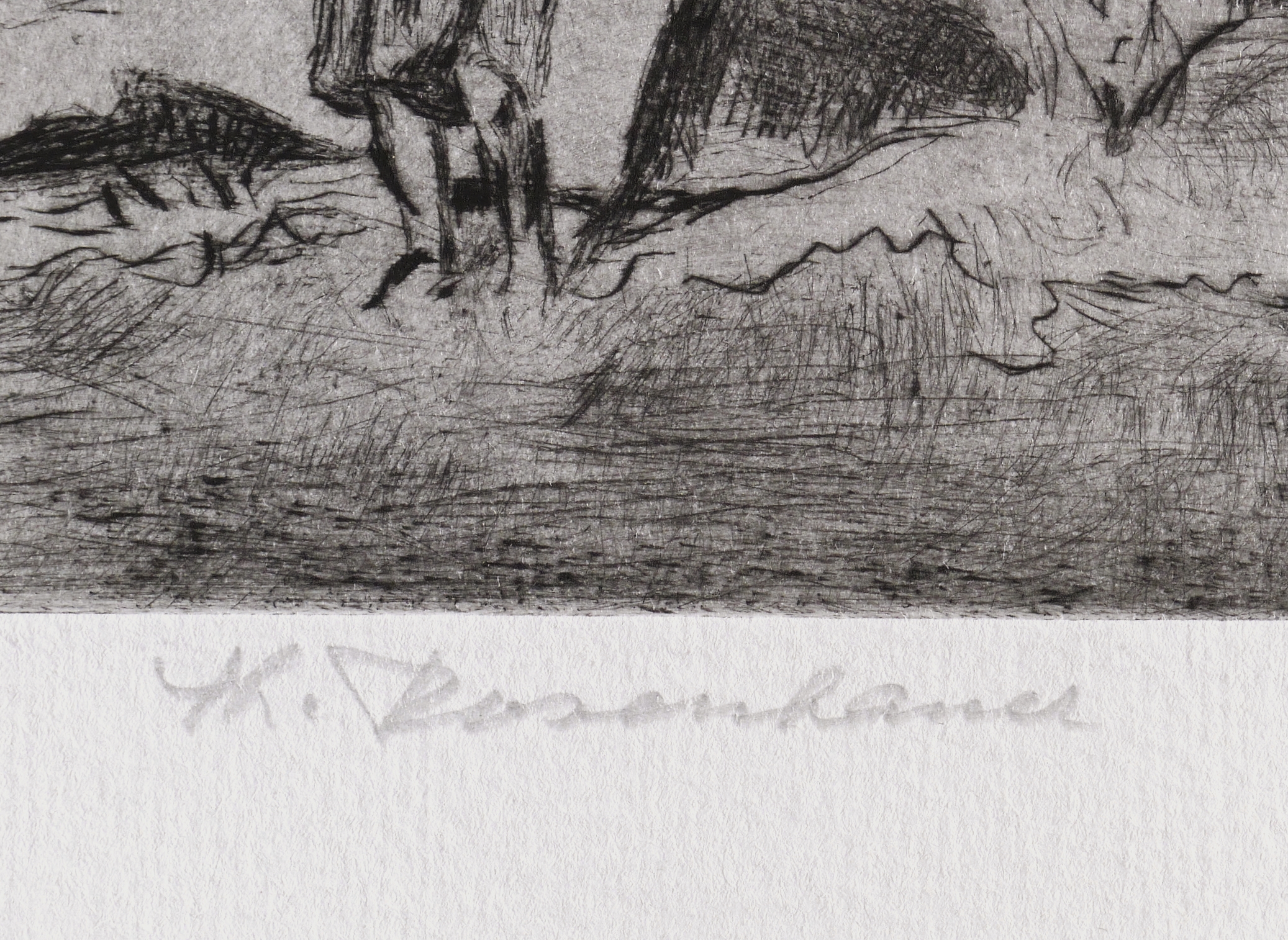 Um 1963. Radierung / Kaltnadel, in Schwarz, mit Plattenton, auf hellem Weißenborn. – Originale Künstlergrafik, von Theodor Rosenhauer. – 12,3 x 18,0 cm (Darstellung / Platte), 16 x 22 cm (Blatt).