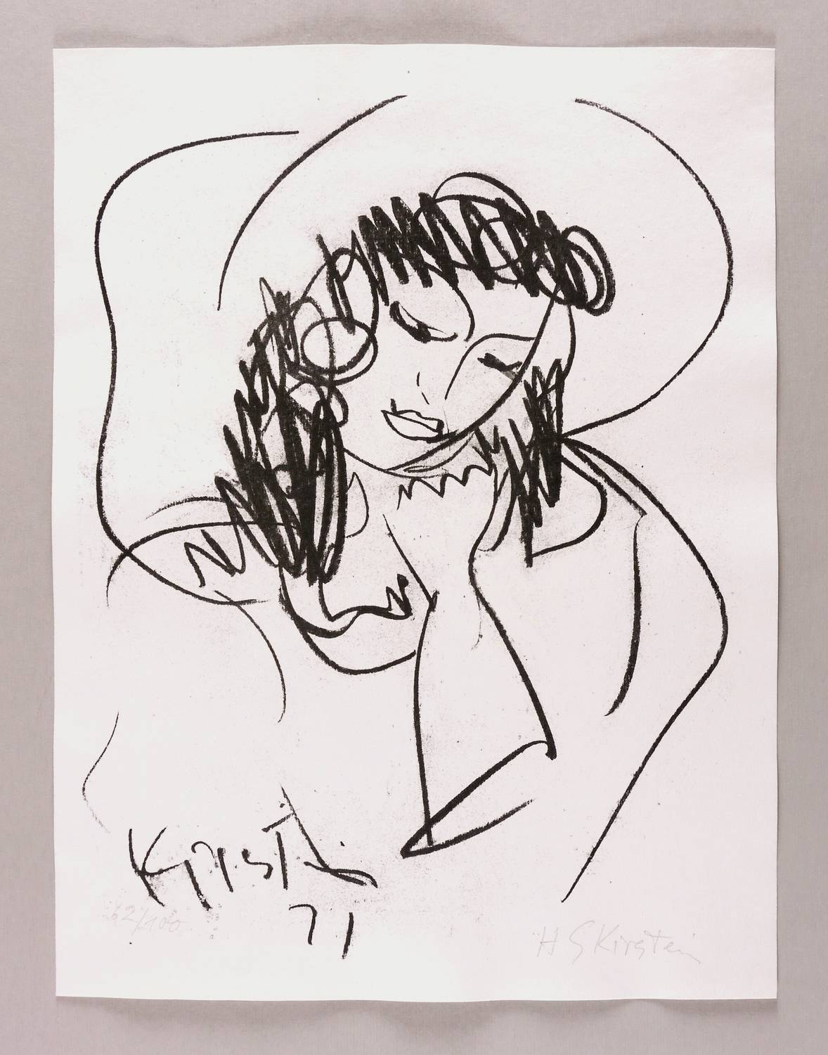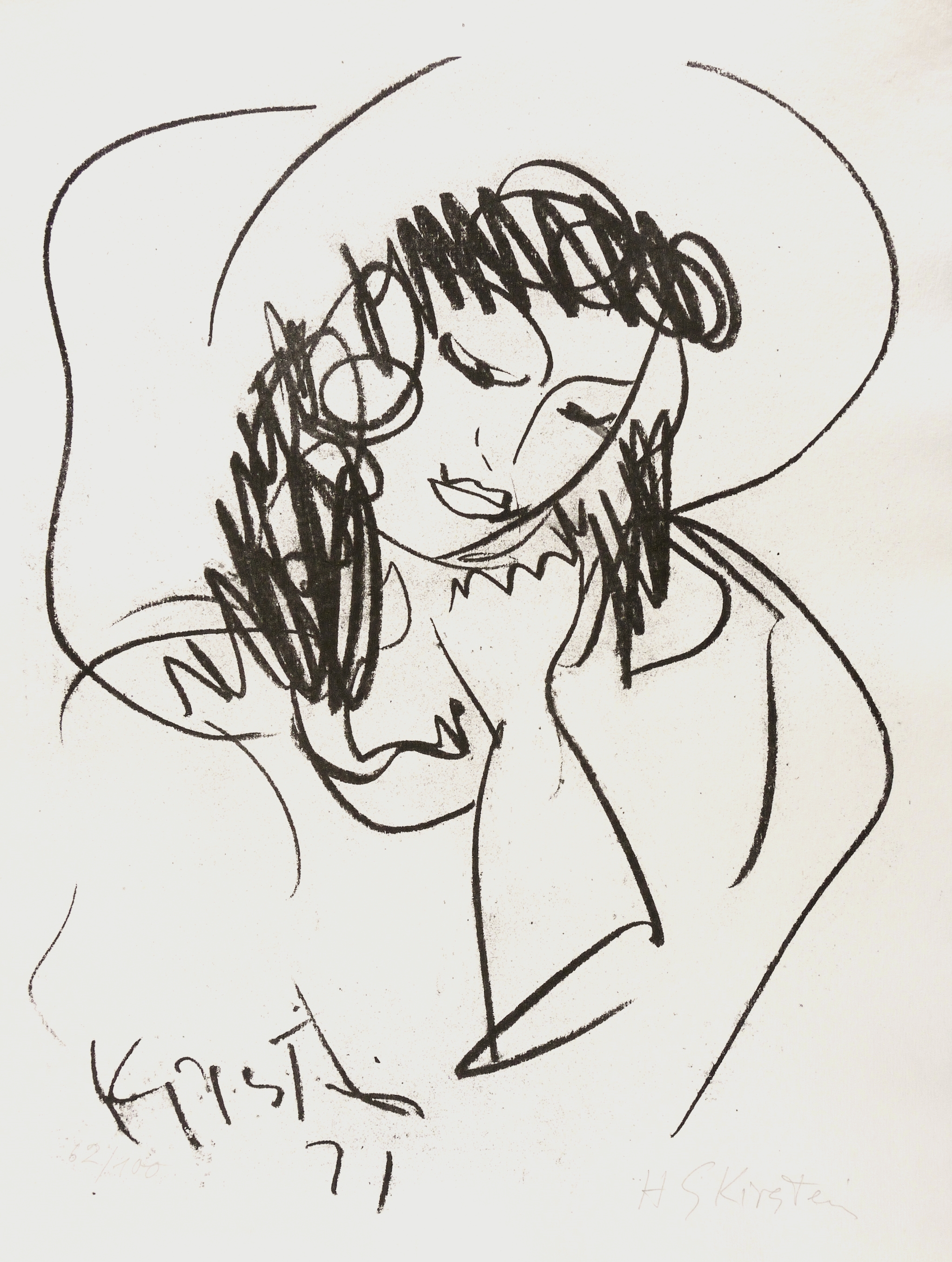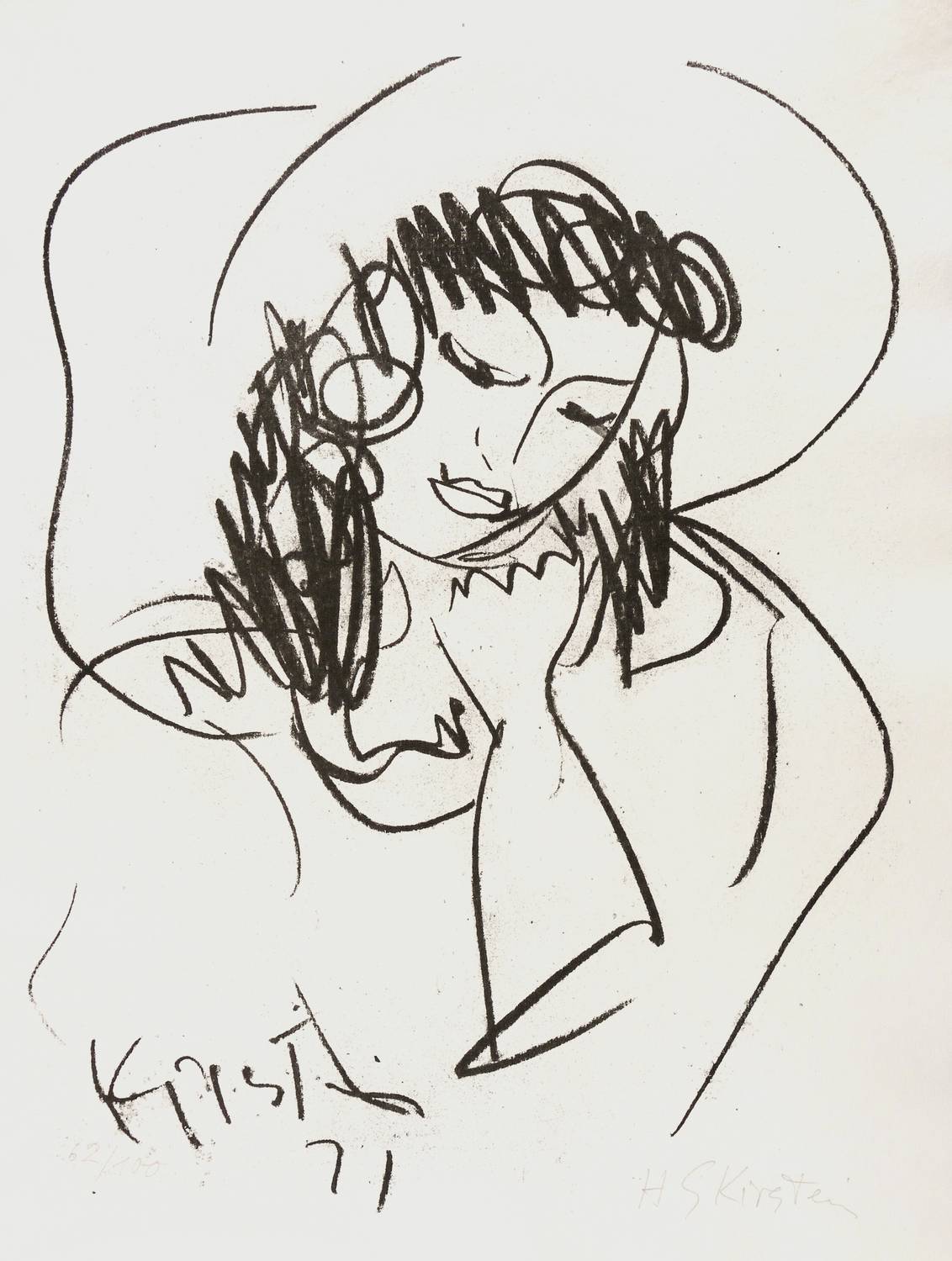 Rechts unten in Bleistift signiert: ″H S Kirstein″. Links eigenhändige Auflagenbezeichnung: ″62/100″. Im Stein links unten zusätzlich signiert und datiert: ″Kirstein 71″. – Charakteristisches Blatt des Dresdner Künstlers. – Tadellos. Sehr guter Zustand.