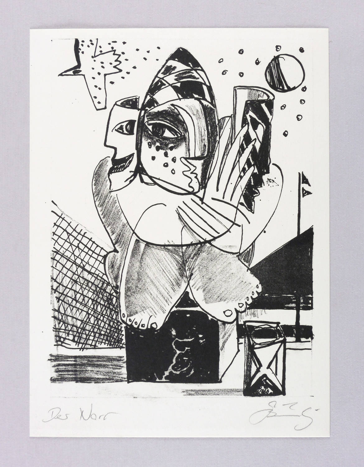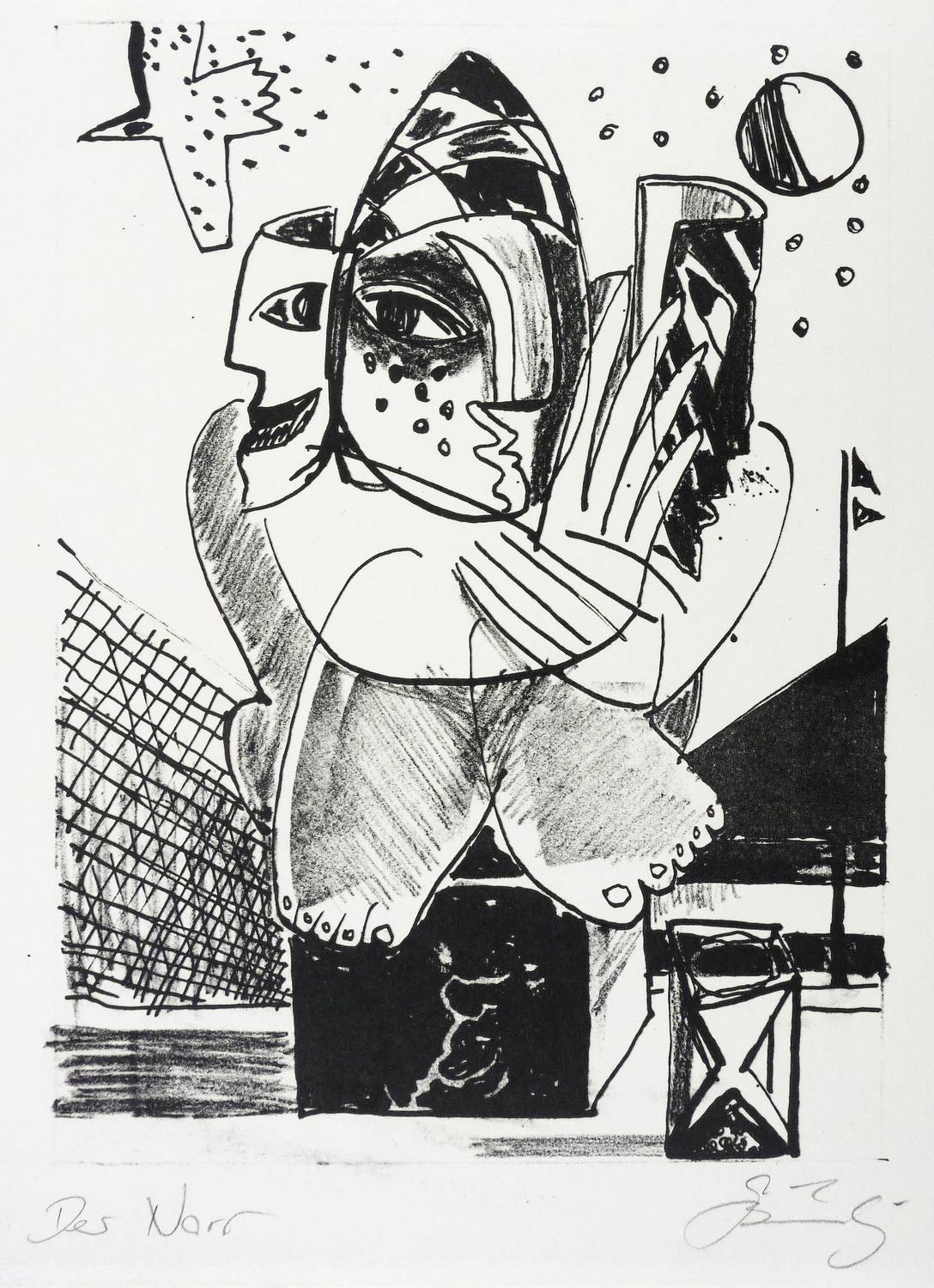 Unten rechts in Bleistift signiert: ″GBräunling″. Links Titel: ″Der Narr″. – Rückseitig leichte Montagespuren. Sonst tadellos. Sehr guter Zustand.