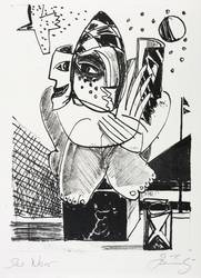 1985. Lithografie / Kreide- & Pinsellithografie, in Schwarz, auf hartem hellchamois Velin. – Originale Künstlergrafik, von Gottfried Bräunling. – 23,0 x 16,9 cm (Darstellung / Druckbild), 27 x 20 cm (Blatt).