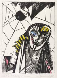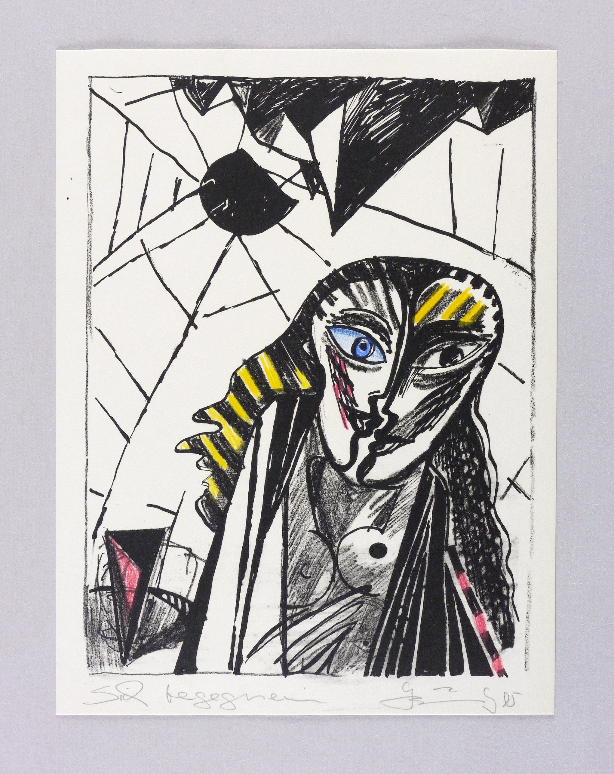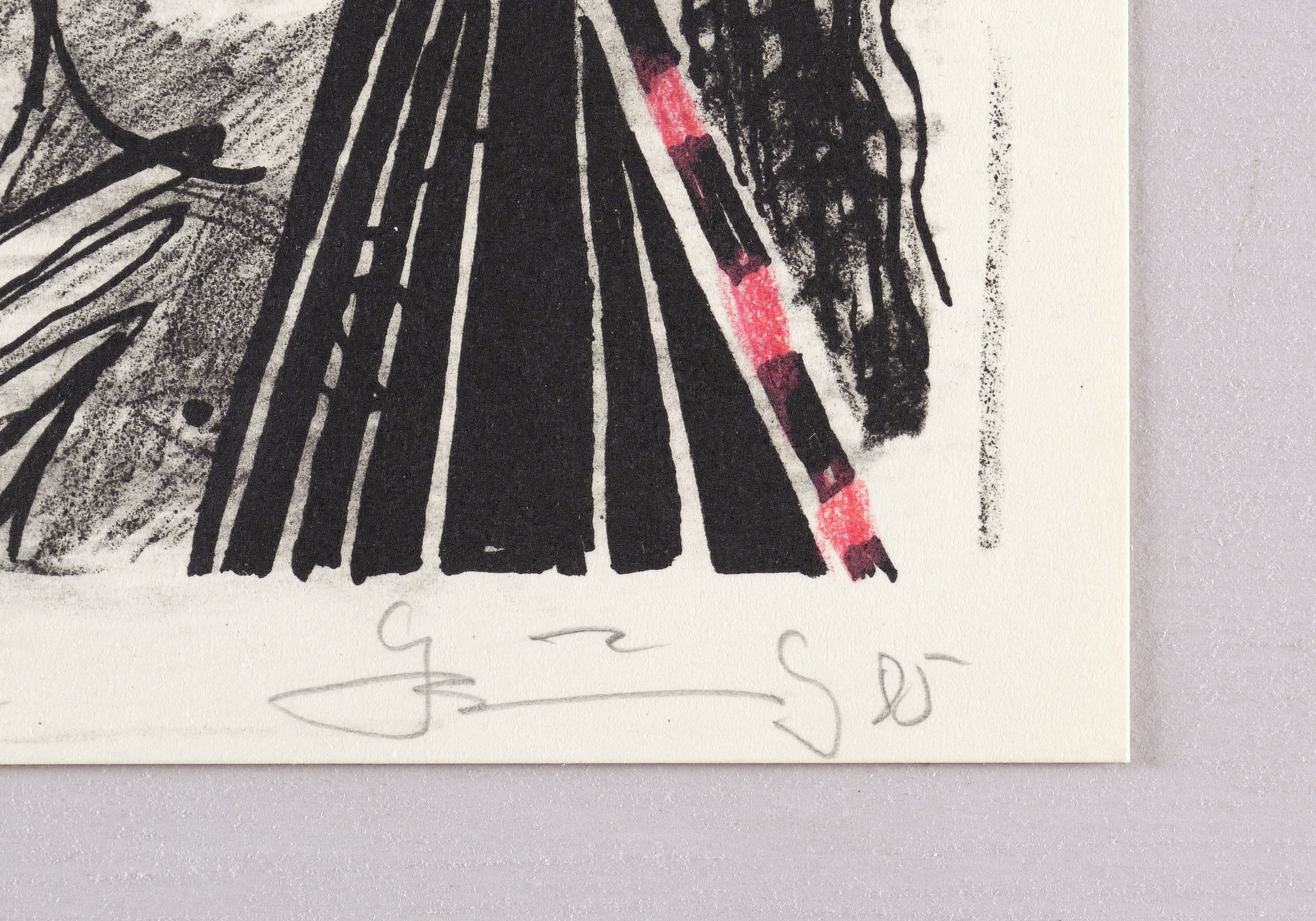 1985. Farblithografie / Kreide- & Pinsellithografie, in 4 Farben, auf hartem hellchamois Velin. – Originale Künstlergrafik, von Gottfried Bräunling. – 22,7 x 17,0 cm (Darstellung / Druckbild), 26 x 19 cm (Blatt).