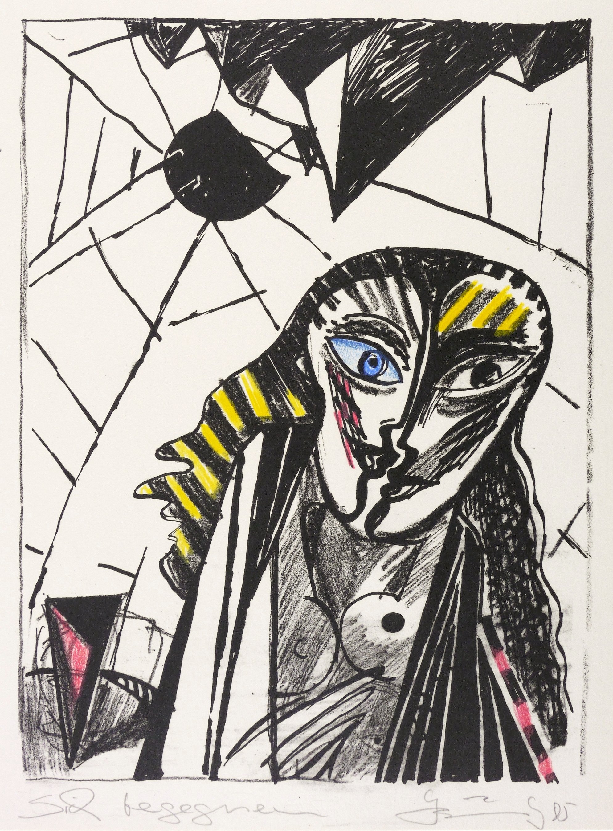 Unten rechts in Bleistift signiert: ″GBräunling″. Links Titel: ″Sich begegnen″. – Rückseitig leichte Montagespuren. Sonst tadellos. Sehr guter Zustand.
