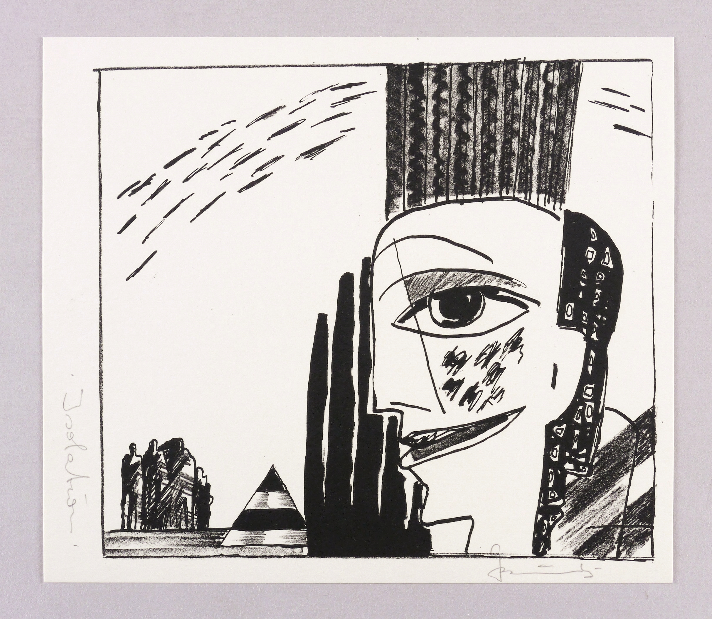 1985. Lithografie / Kreide- & Pinsellithografie, in Schwarz, auf hartem hellchamois Velin. – Originale Künstlergrafik, von Gottfried Bräunling. – 19,5 x 21,7 cm (Darstellung / Druckbild), 22 x 25 cm (Blatt).