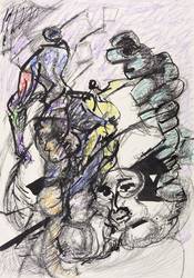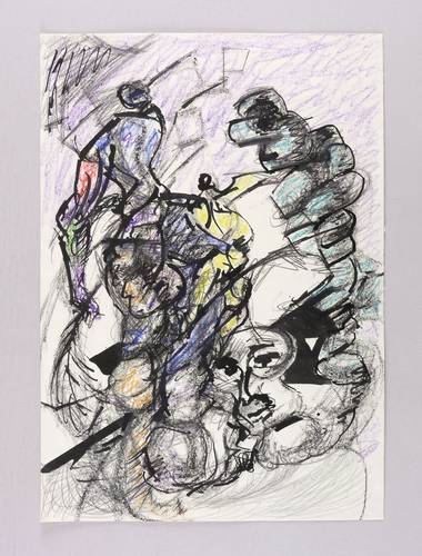 1986. Mischtechnik / Farbkreide, Tusche & Graphit, auf leichtem hellchamois Velin. – Originale Künstlergrafik, von Horst Weber. – Unikat. – 42,3 x 29,7 cm (Darstellung / Blatt).