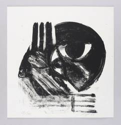 1986. Lithografie / Pinsellithografie, in Schwarz, auf hartem hellchamois Velin. – Originale Künstlergrafik, von Michael Hengst. – Auflage Exemplar Nr. 28/200. – 31,6 x 30,2 cm (Darstellung / Druckbild), 39 x 37 cm (Blatt).