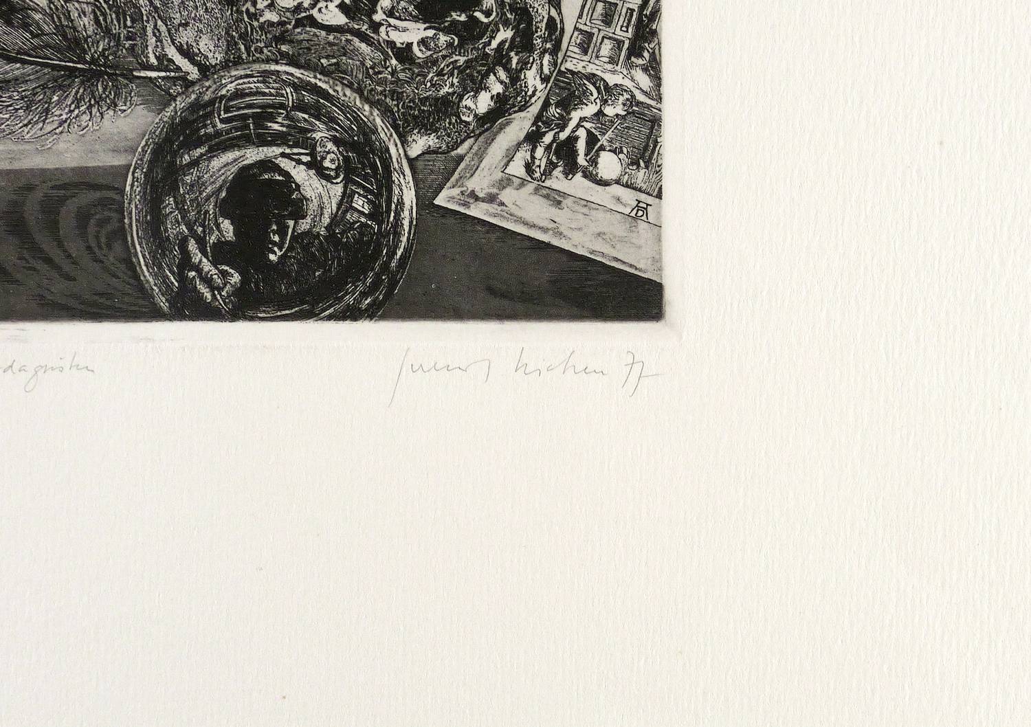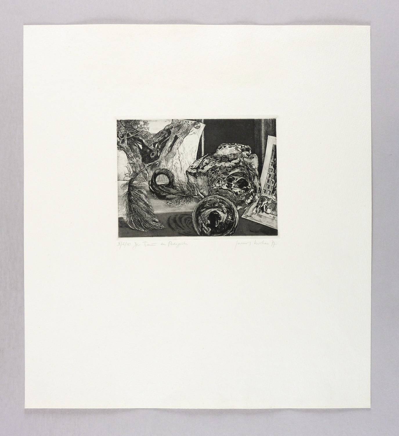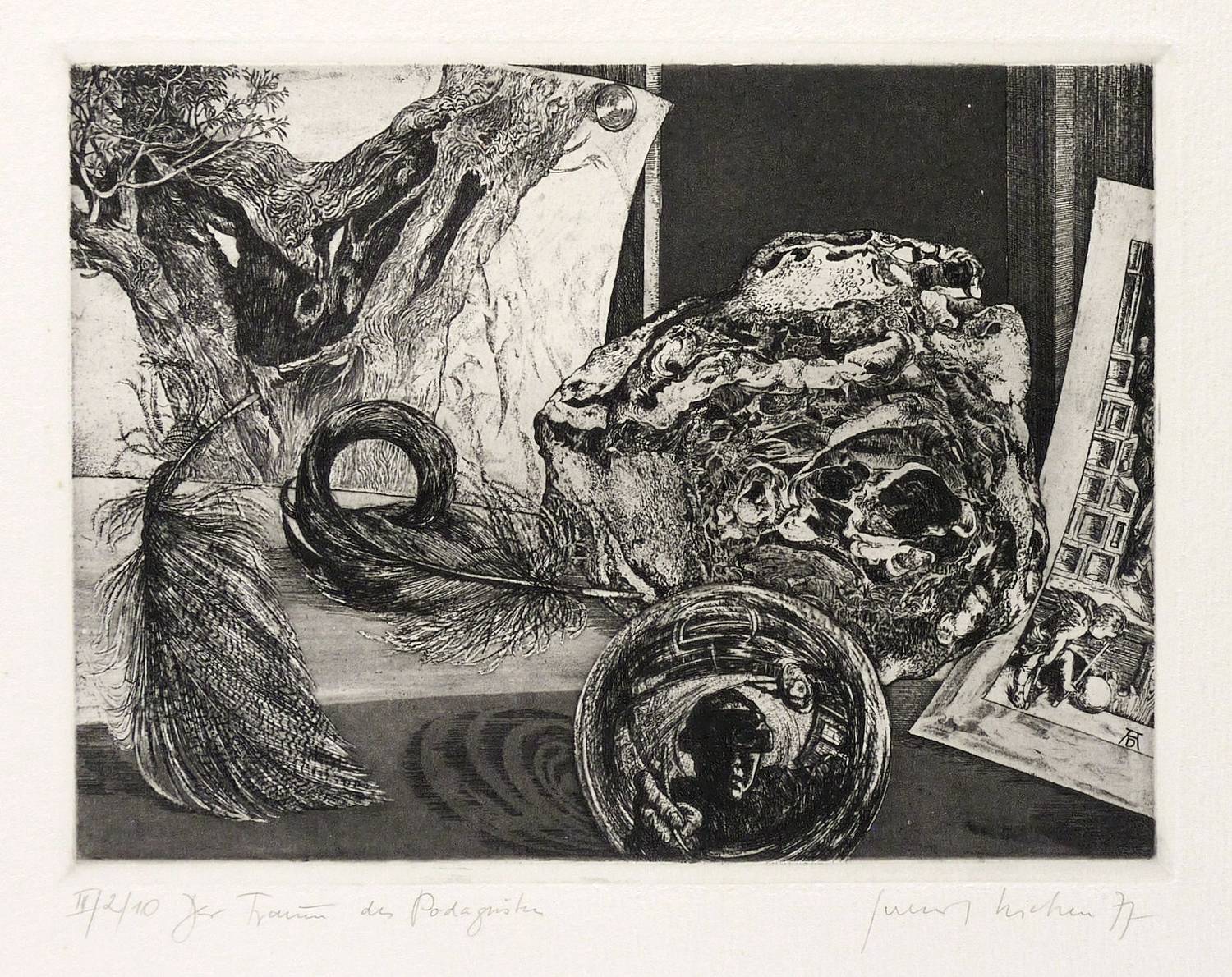 WVZ II-075. – Rechts unten in Bleistift signiert und datiert: ″Gerenot Richter 77″. Links Auflagenbezeichnung: ″II/2/10″. Dazu Titel: ″Der Traum des Podagristen″. – Radierung als Hommage zu Dürers 450. Todestag. – Ohne Mängel. Sehr guter Zustand.