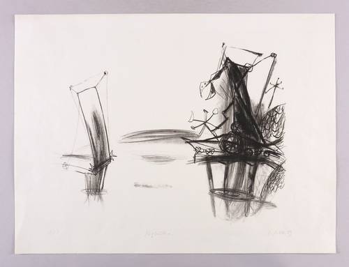 1989. Lithografie / Kreidelithografie, in Schwarz, auf hellchamois Weißenborn. – Originale Künstlergrafik, von Rainer Zille. – Auflage Exemplar Nr. 1/20. – 34,0 x 44,3 cm (Darstellung / Druckbild), 46 x 60 cm (Blatt).