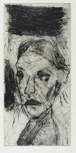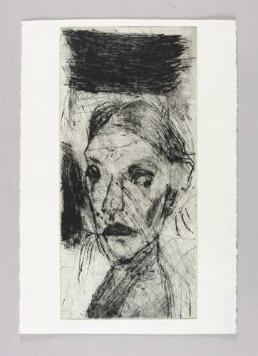 2000. Radierung / Kaltnadelradierung, in Schwarz, auf hellchamois Bütten. – Originale Künstlergrafik, von Heike Wadewitz. – Unikat. – 30,4 x 14,2 cm (Darstellung / Platte), 33 x 23 cm (Blatt).