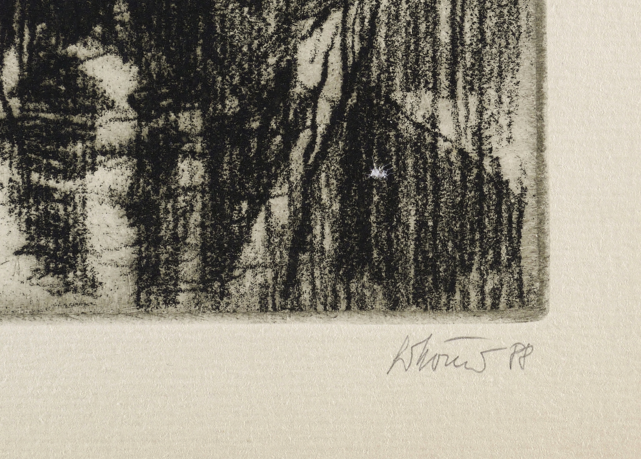1988. Radierung / Vernis mou, mit Plattenton, in Schwarz, auf hartem gelblichem Weißenborn. – Originale Künstlergrafik, von Gottfried Körner. – Probedruck. – 22,4 x 29,7 cm (Darstellung / Platte), 26 x 33 cm (Blatt).
