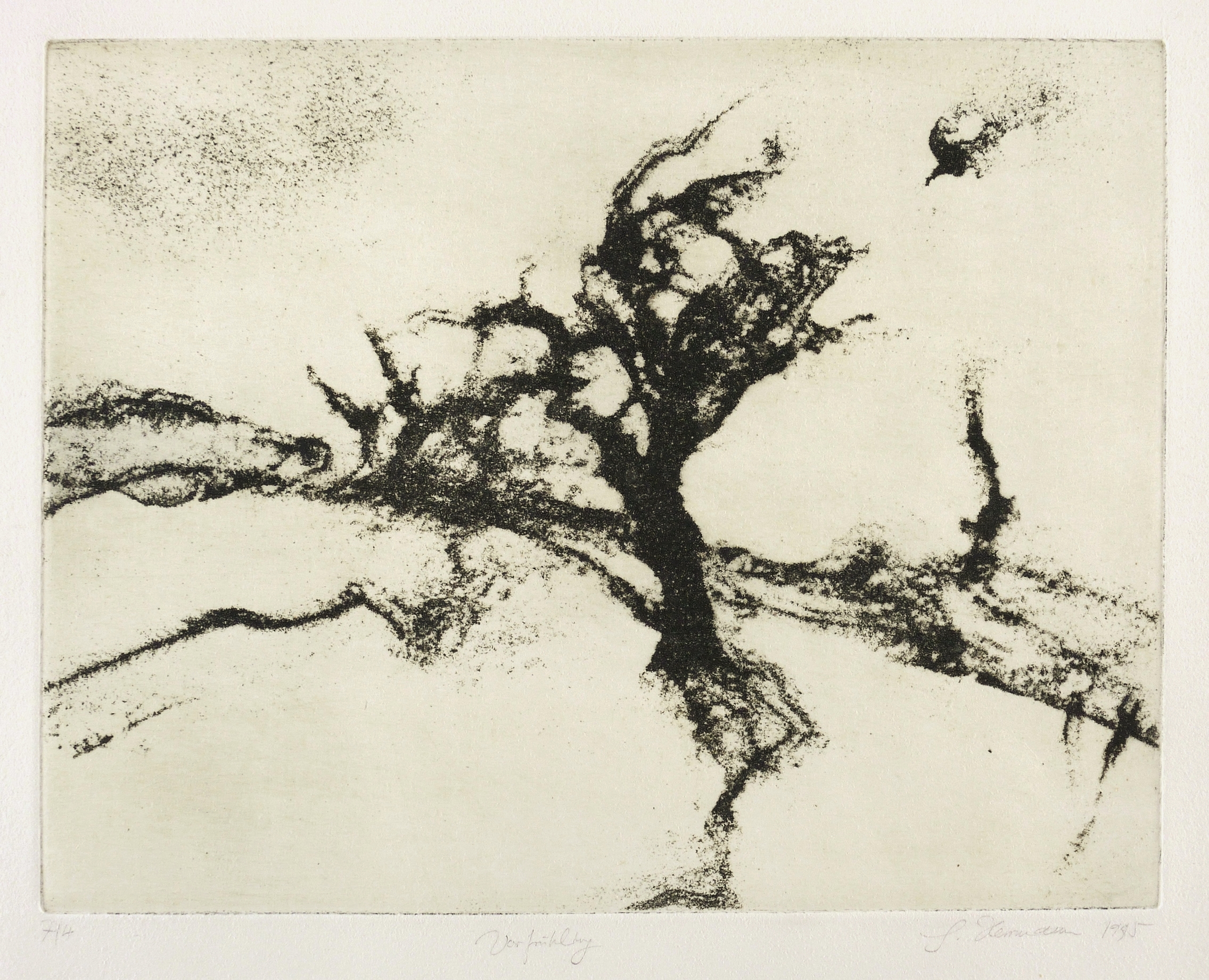 Rechts unten in Bleistift signiert und datiert: ″G. Herrmann 1995″. Links Auflagenbezeichnung: ″7/4″. Mittig Titel: ″Vorfrühling″. – Sehr guter Zustand.