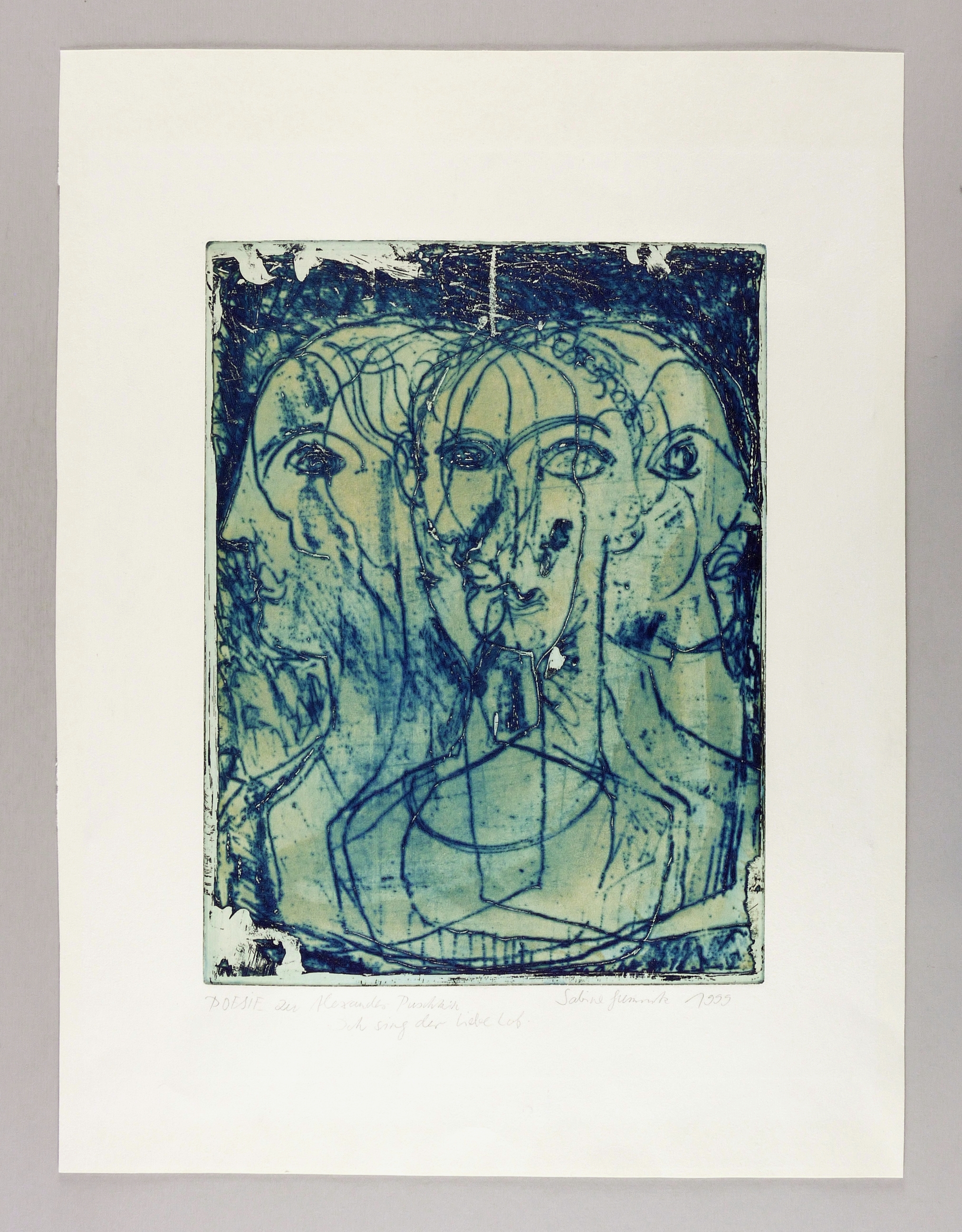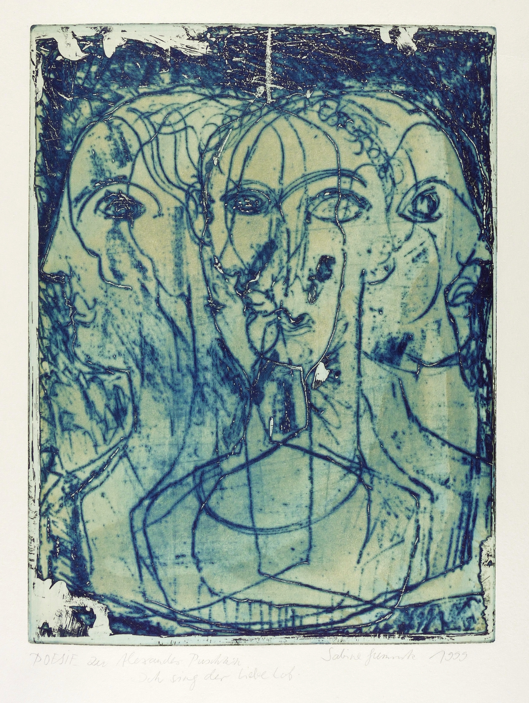 Rechts unten in Bleistift signiert und datiert: ″Sabine Gumnitz 1999″. Links bezeichnet: ″POESIE zu Alexander Puschkin Ich sing der Liebe Lob″. – Sehr guter Zustand.