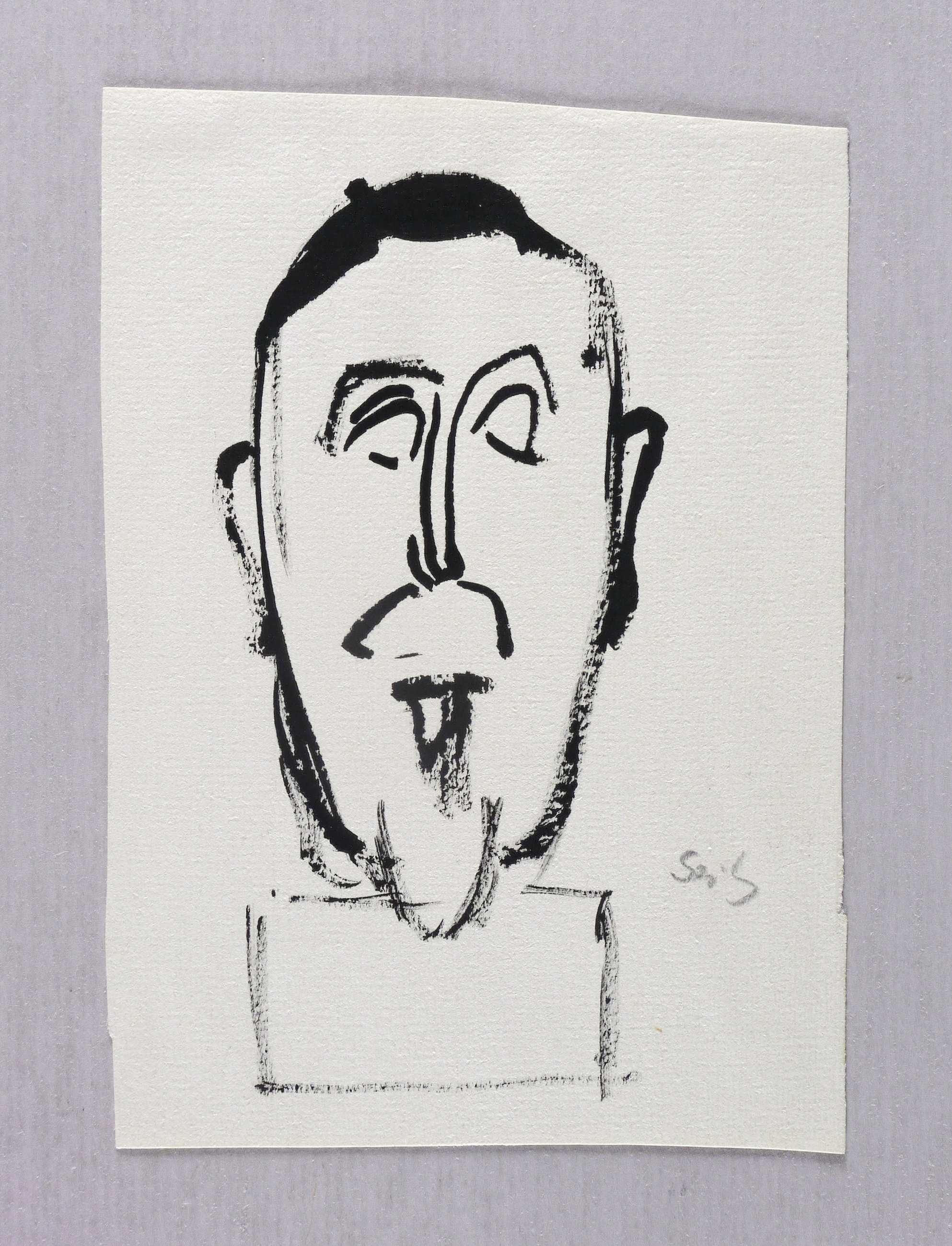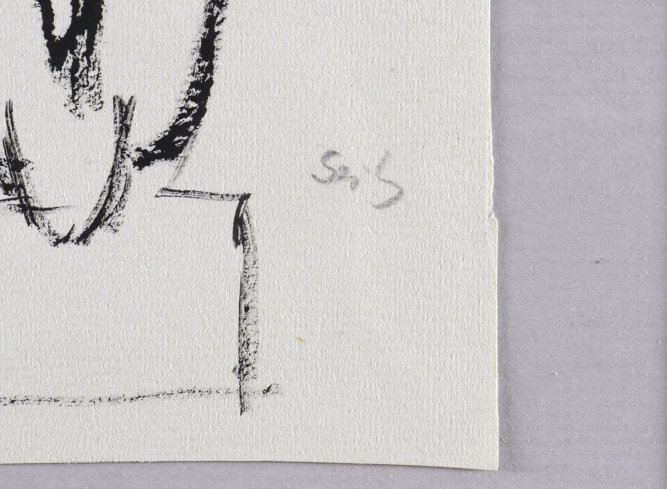 1950. Zeichnung / Pinselzeichnung, in schwarzer Tusche, auf rauem hellchamois Bütten. – Originale Künstlergrafik, von Gustav Seitz. – Unikat. – 15,0 x 10,5 cm (Darstellung / Blatt).