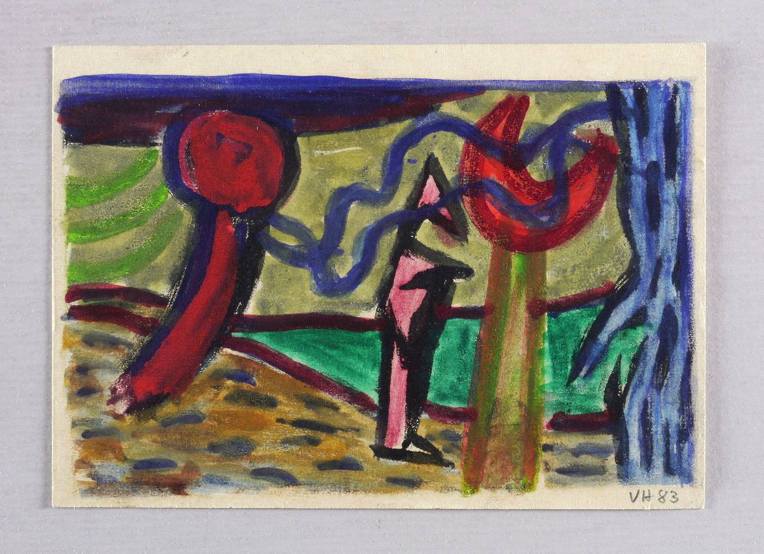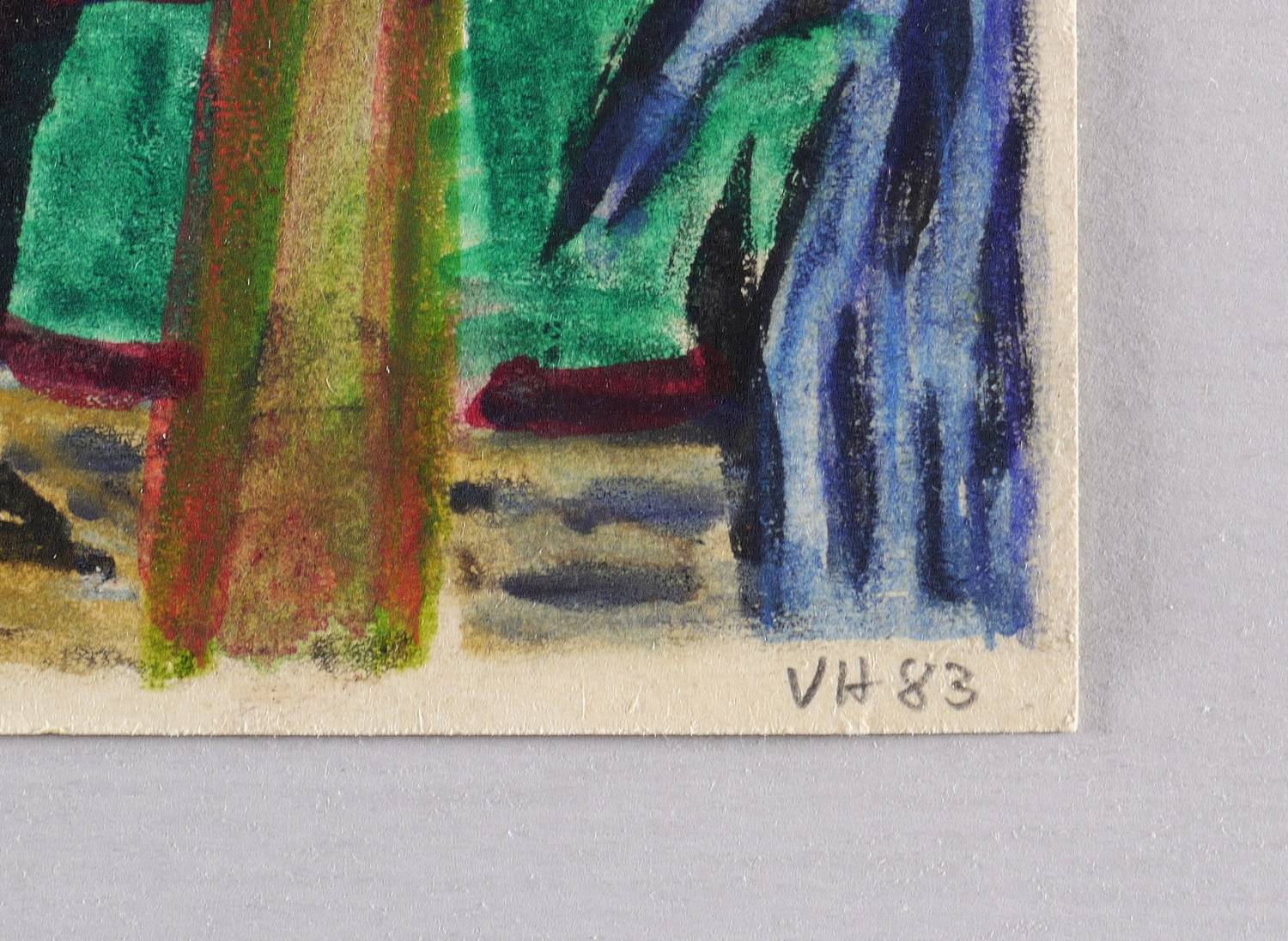 Rechts unten in Bleistift signiert und datiert: ″VH 83″. Verso Kartengruß an Gerlint und Gert Söder, Dresden. Poststempel Dresden, 26.12.1983. – Sehr guter Zustand.