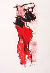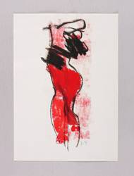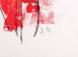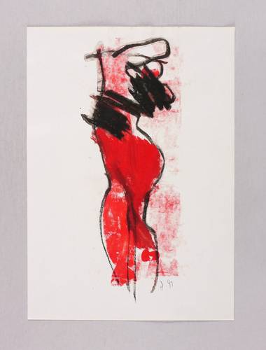 1991. Mischtechnik / Kreide & Acryl, auf glattem weißem Werkdruck. – Originale Künstlergrafik, von Rosemarie Stephan (Julia). – Unikat. – 26,9 x 10,2 cm (Darstellung), 30 x 21 cm (Blatt).