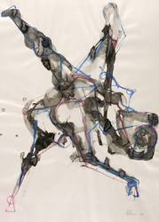 1990. Mischtechnik / Tusche, Aquarell & Farbkreide, auf hartem hellchamois Velin. – Originale Künstlergrafik, von Klaus-Michael Stephan. – Unikat. – 59,5 x 42,0 cm (Darstellung / Blatt).
