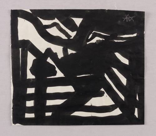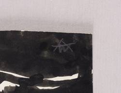 1950-1960. Zeichnung / Pinselzeichnung, in schwarzer Tusche, auf leichtem gelblichem Velin. – Originale Künstlergrafik, von Alexander Wolfgang. – Unikat. – 12,7 x 14,5 cm (Darstellung / Blatt).
