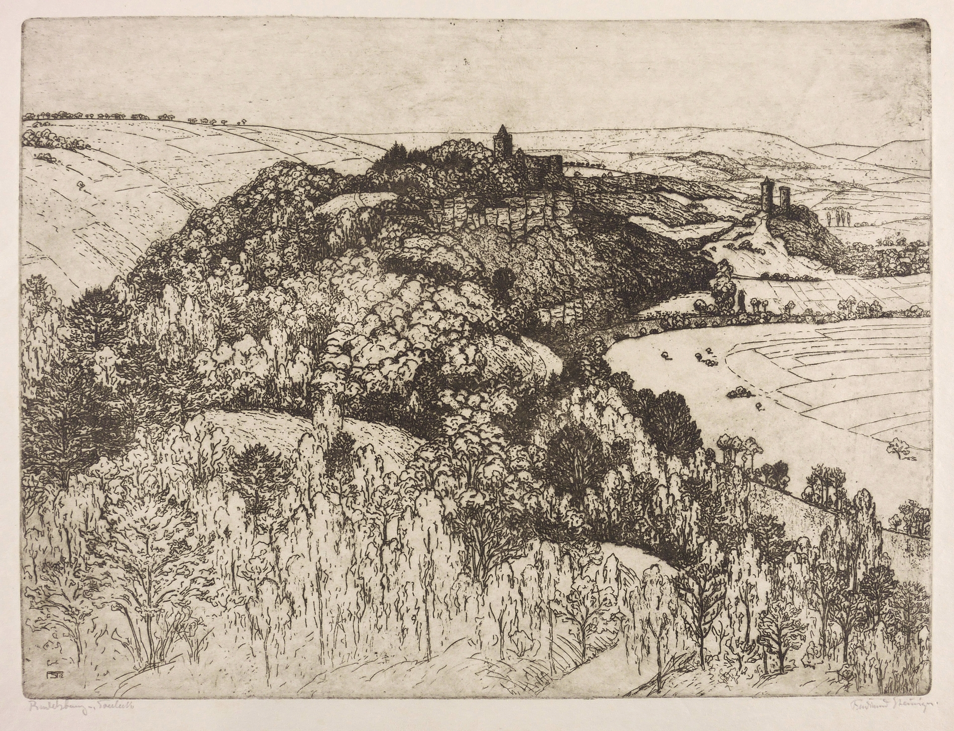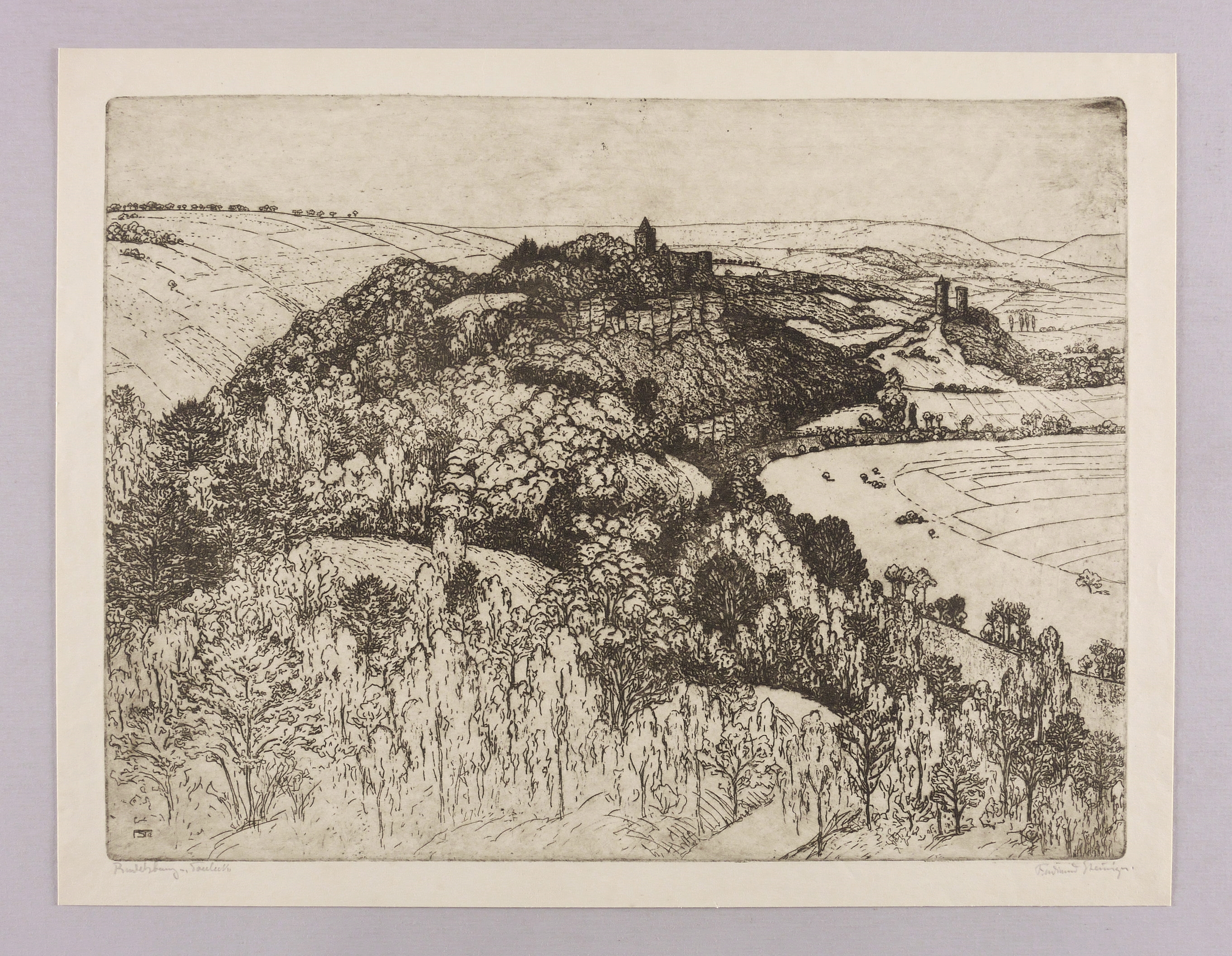 Rechts unten in Bleistift signiert: ″Ferdinand Steiniger″. Links Titel: ″Rudelsburg -, Saaleck″. In der Platte links unten Monogramm und Jahr FSt 12″. – Sehr guter Zustand.