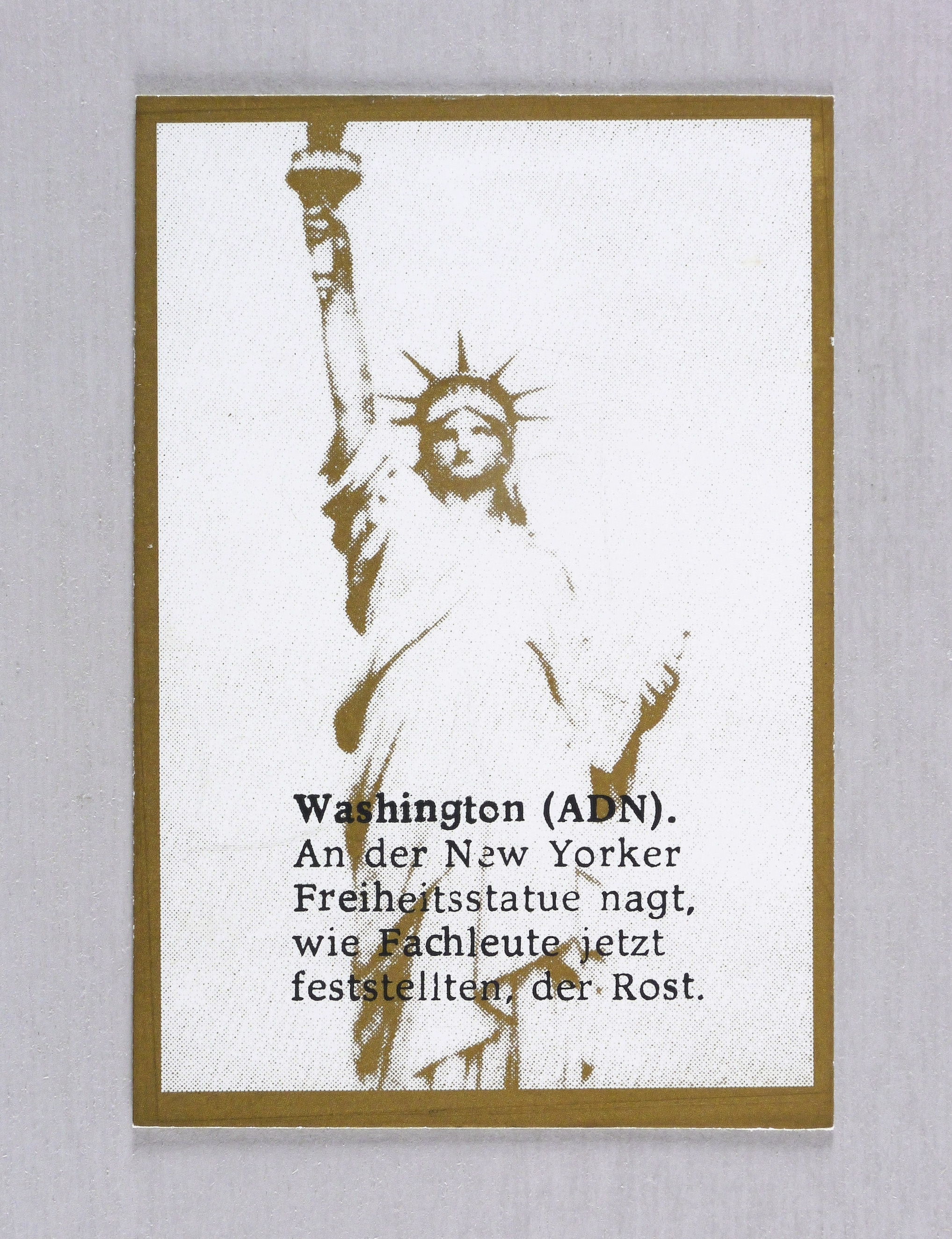 1982. Farbsiebdruck / Farbserigrafie, in Gold & Schwarz, auf weißem Karton. – Originale Künstlergrafik, von Wolfgang Petrovsky. – 15,2 x 10,2 cm (Darstellung / Blatt).