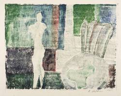 1981. Farbmonotypie, in 8 Farben, auf hellchamois Velin. – Originale Künstlergrafik, von Rosemarie Stephan (Julia). – Unikat. – 21 x 30 cm (Blatt), 17,5 x 22,0 cm (Darstellung / Druckbild).