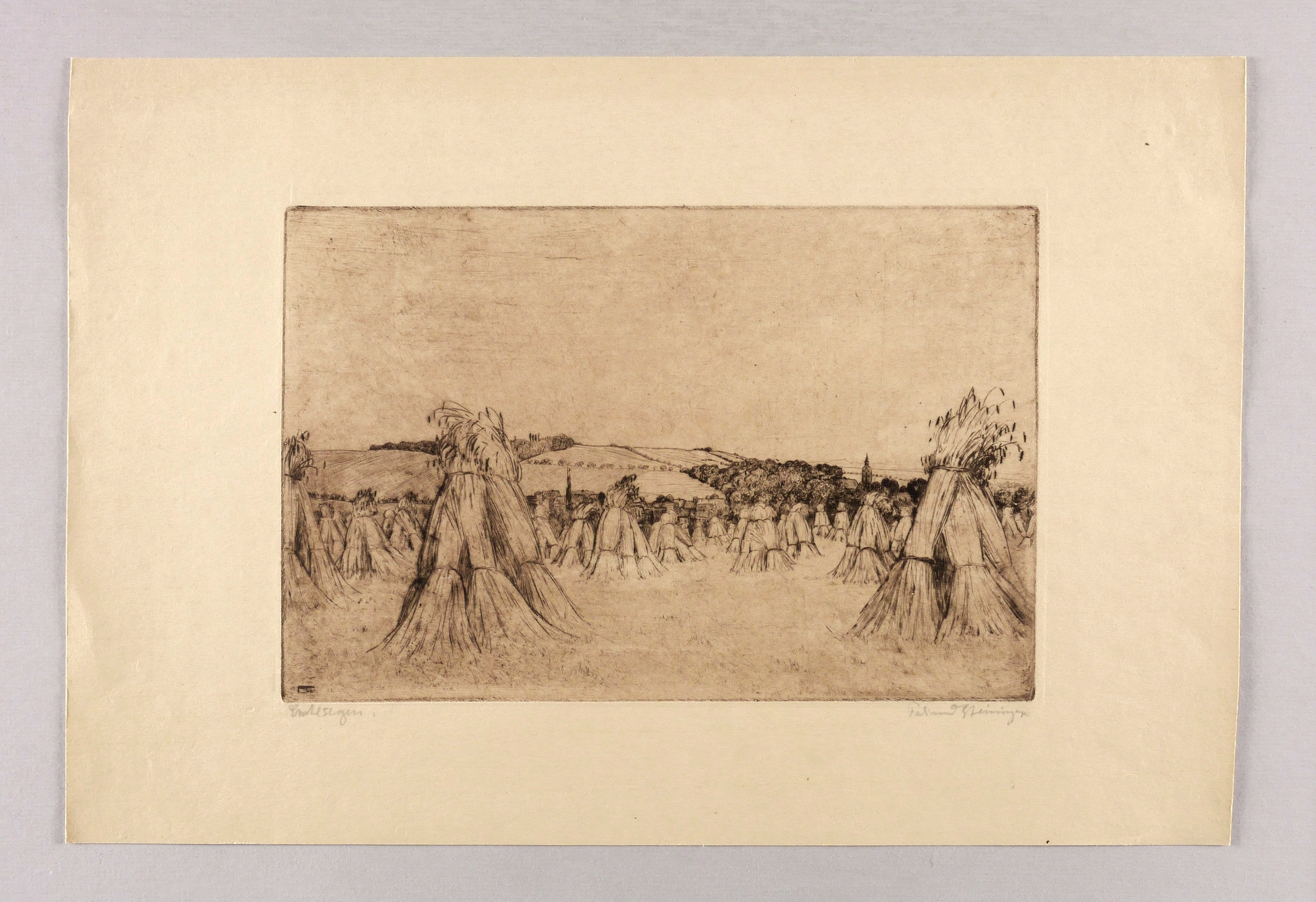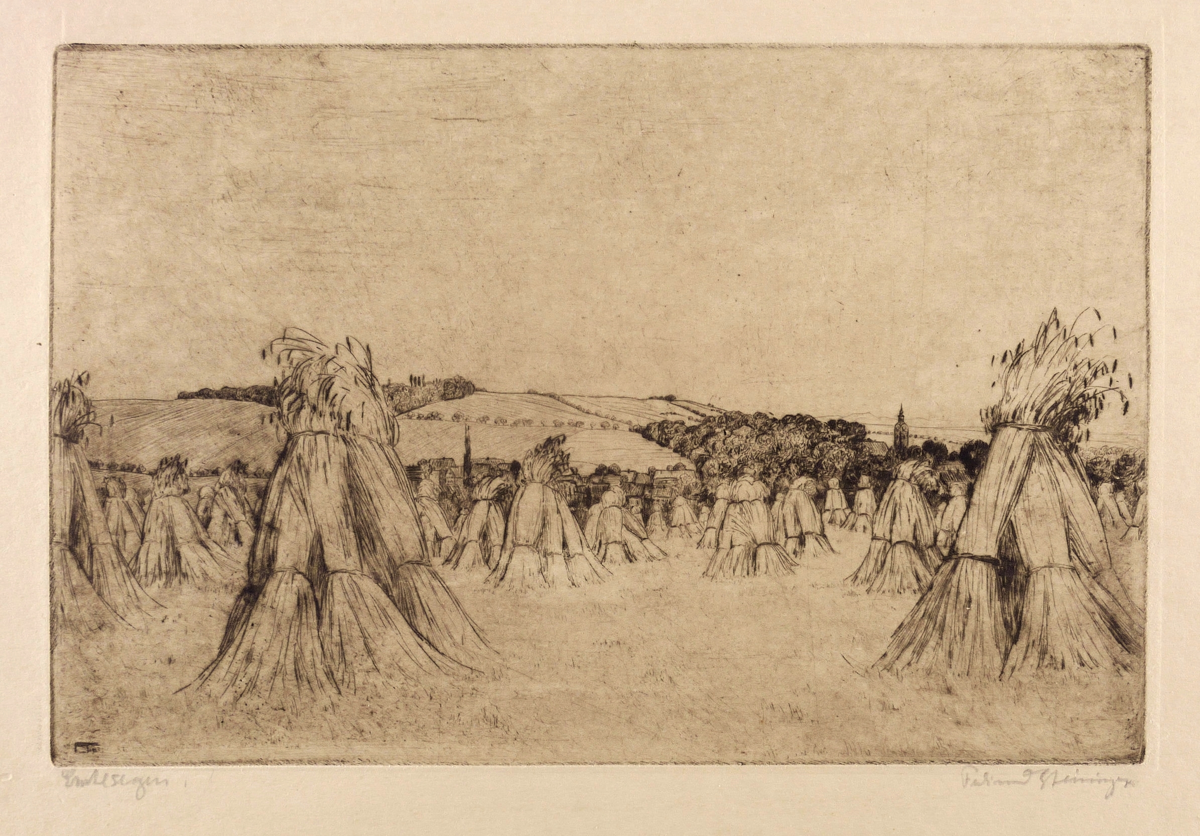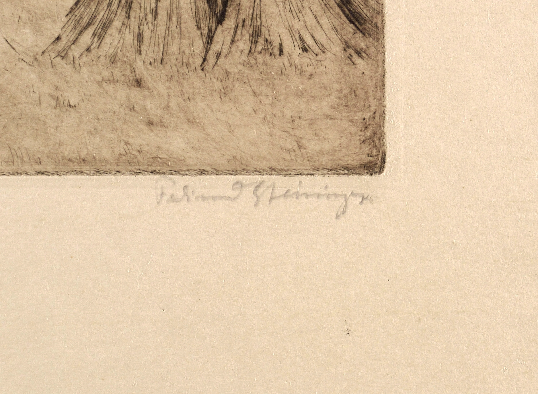 Rechts unten in Bleistift signiert: ″Ferdinand Steiniger.″ Links Titel: ″Erntesegen.″ In der Platte links unten Monogramm und Jahr: ″FST 1913″. – Sehr guter Zustand.