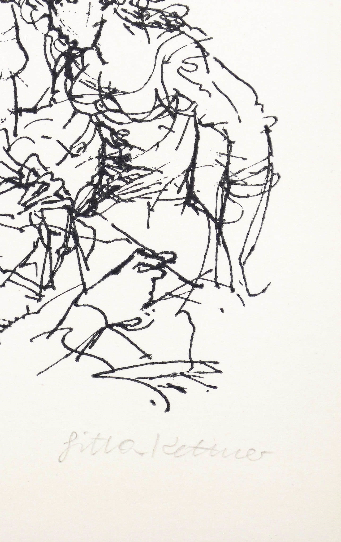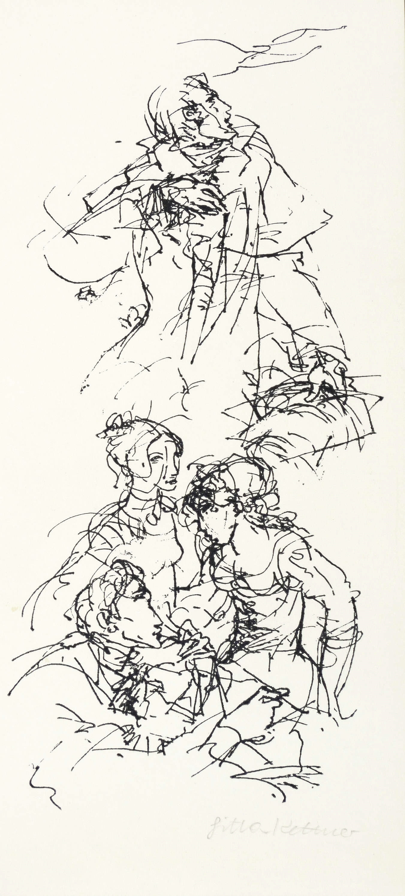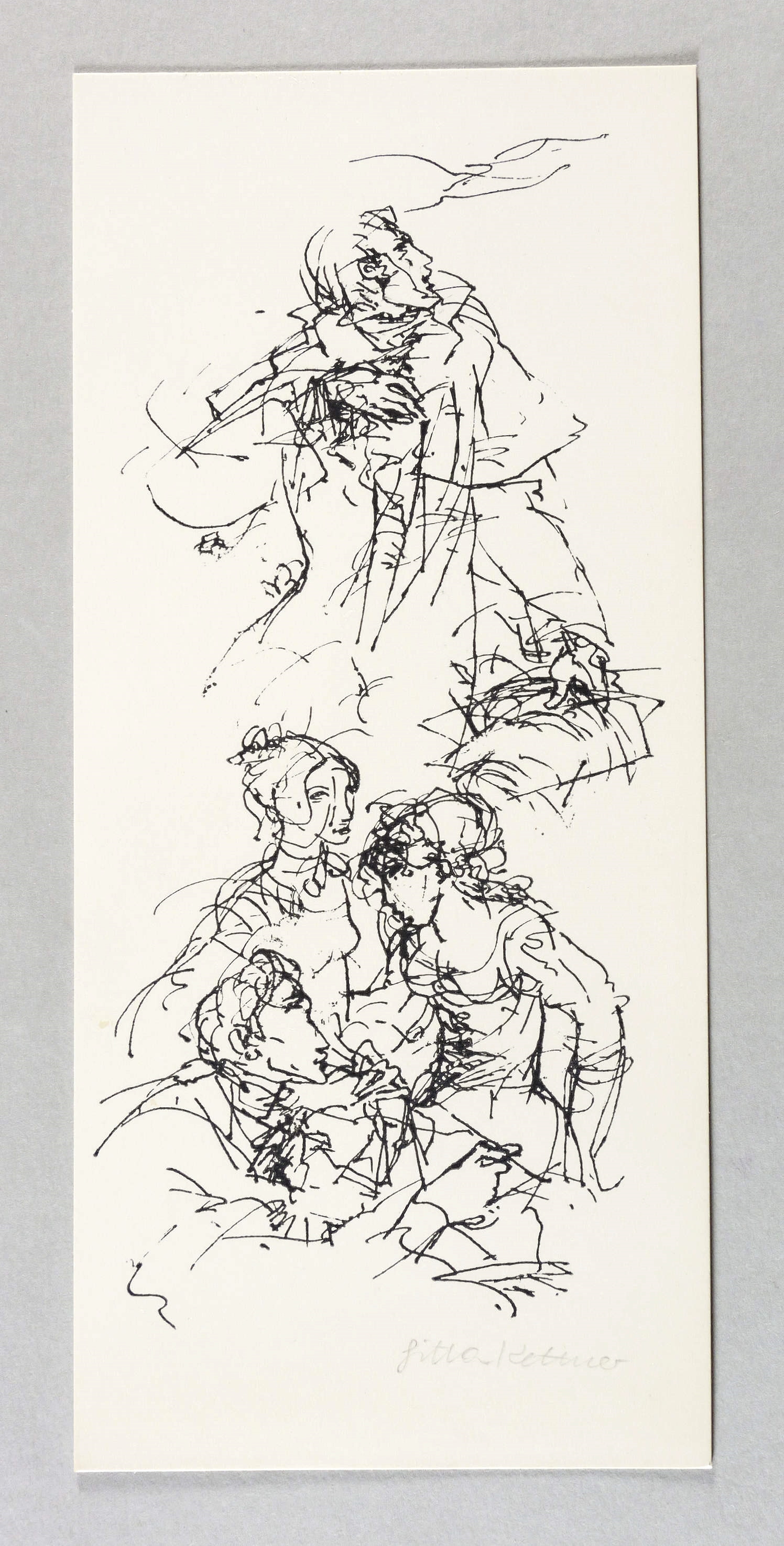 Um 1970. Zeichnung / Federzeichnung, in schwarzer Tusche, auf hellem glänzendem Karton. – Originale Künstlergrafik, von Gitta Kettner. – Unikat. – 21,0 x 9,5 cm (Darstellung / Blatt).