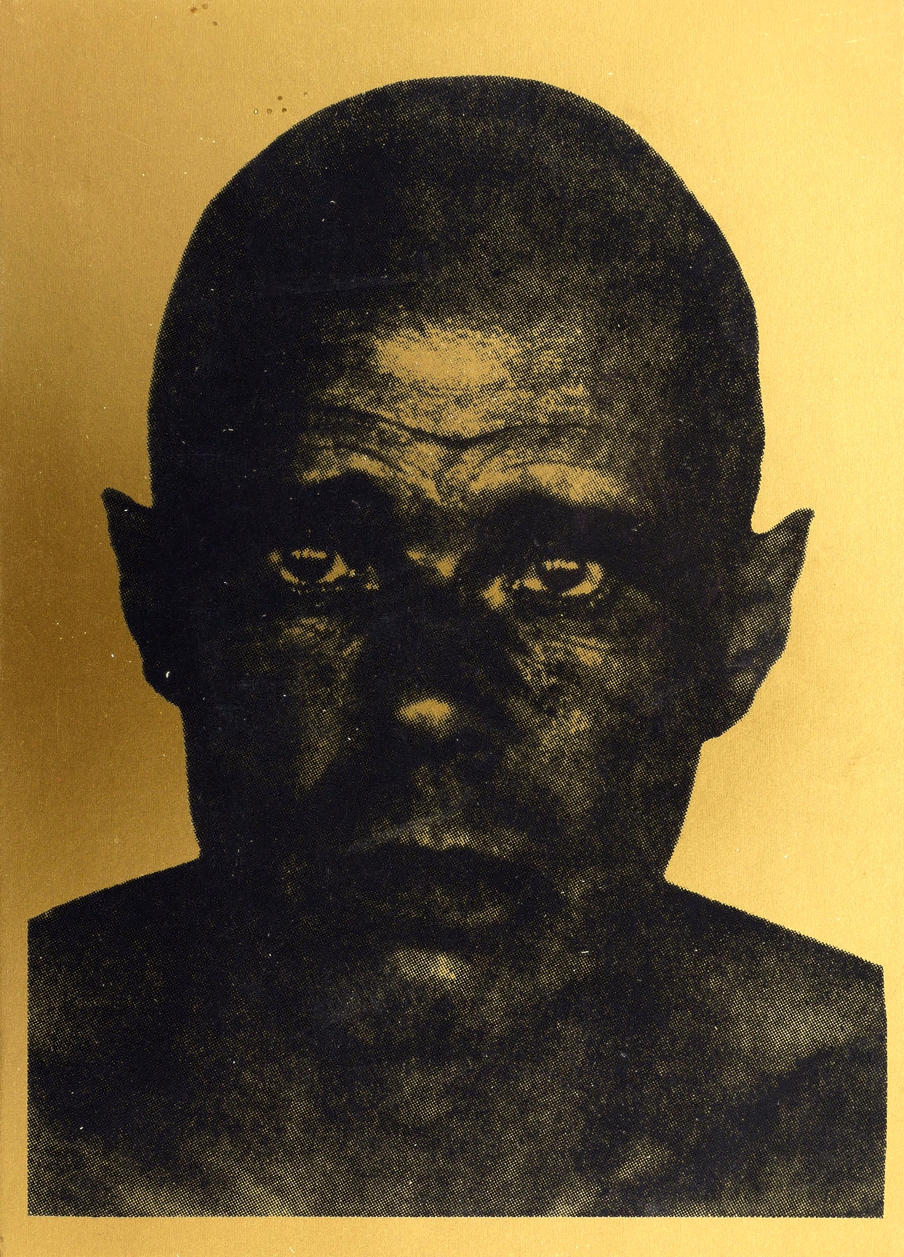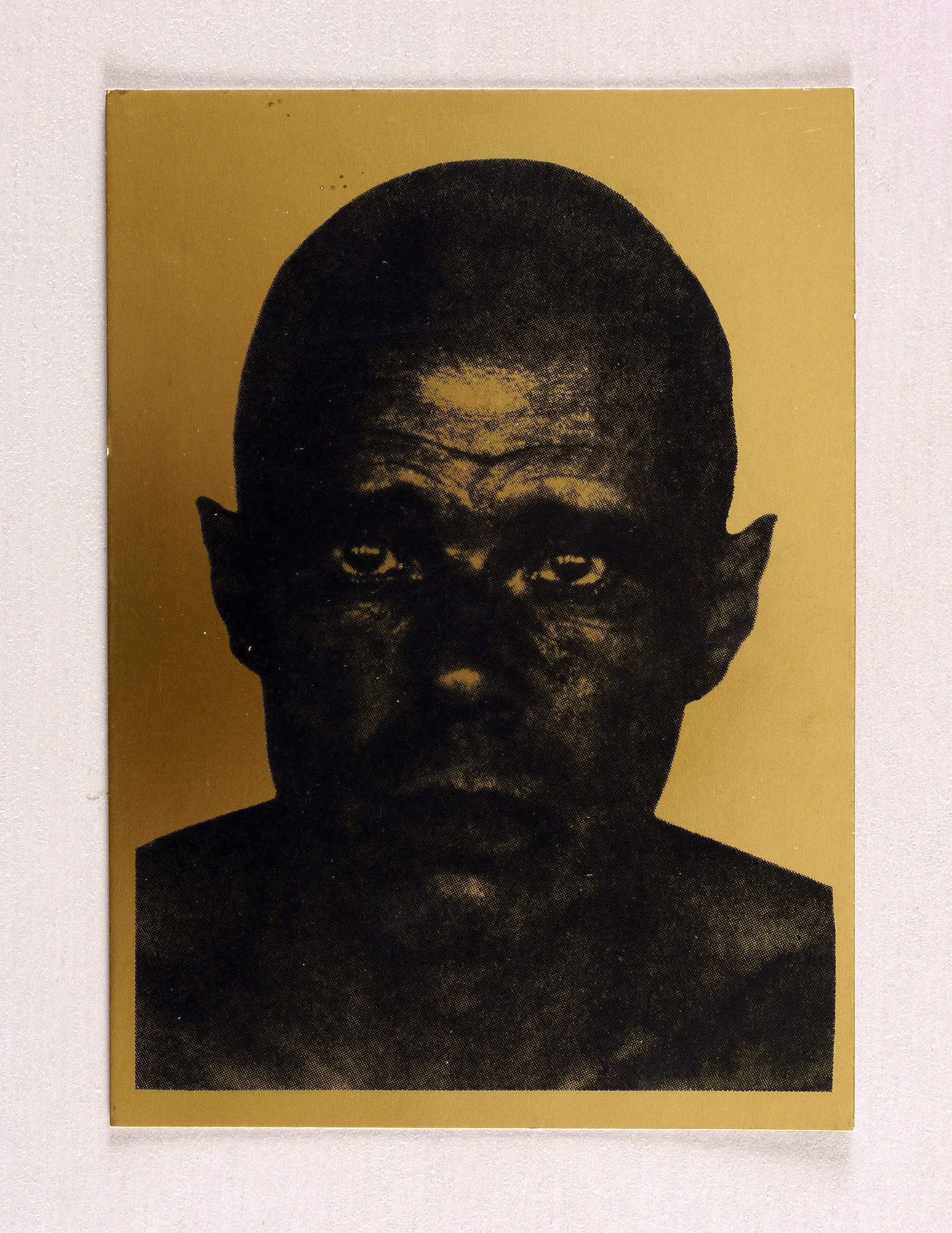 1981. Siebdruck / Serigrafie, in Schwarz, auf in Gold bedrucktem Karton. – Originale Künstlergrafik, von Wolfgang Petrovsky. – 14,8 x 10,5 cm (Darstellung / Blatt).