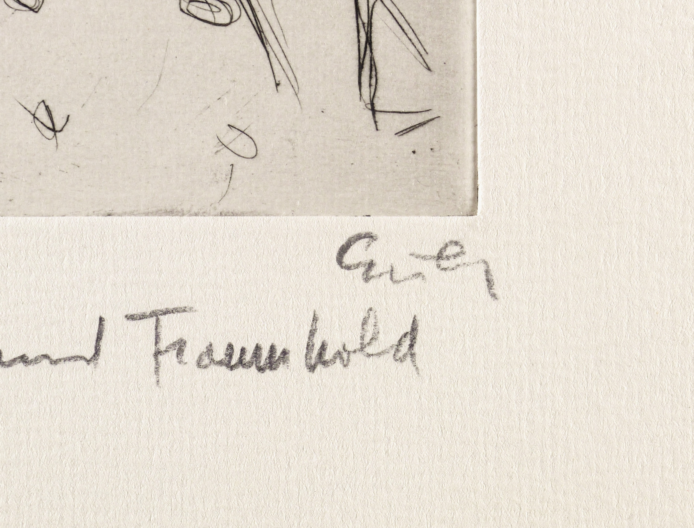 Um 1990. Radierung / Kaltnadel, in Schwarz, mit leichtem Plattenton, auf hellchamois Velin. – Originale Künstlergrafik, von Georg Eisler. – Künstlerexempalr (e.a.). – 12,8 x 9,0 cm (Darstellung / Platte), 23 x 15 cm (Blatt).