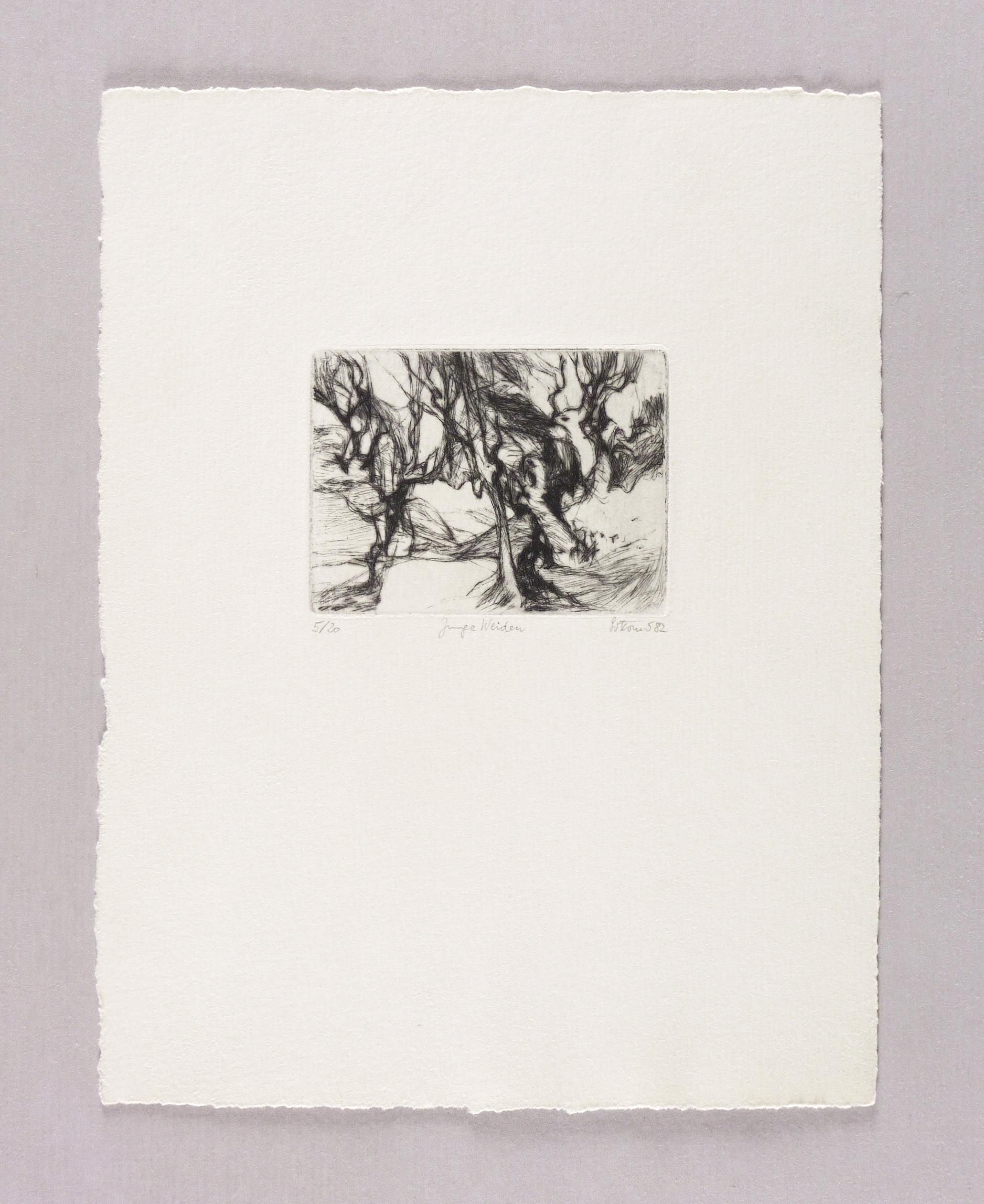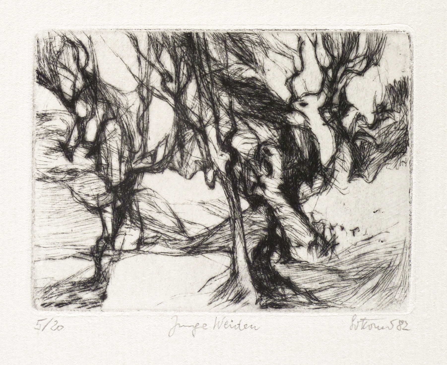 Rechts unten in Bleistift signiert und datiert: ″GKörner 82″. Links Auflagenbezeichnung und Titel: ″5/30 // Junge Weiden″. – Sehr guter Zustand.