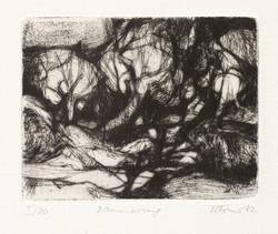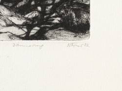 1982. Radierung / Strichätzung & Kaltnadel, in Schwarz, auf hellchamois Velinkarton. – Originale Künstlergrafik, von Gottfried Körner. – Auflage Exemplar Nr. 5/20. – 5,8 x 7,4 cm (Darstellung / Platte), 23 x 18 cm (Blatt).