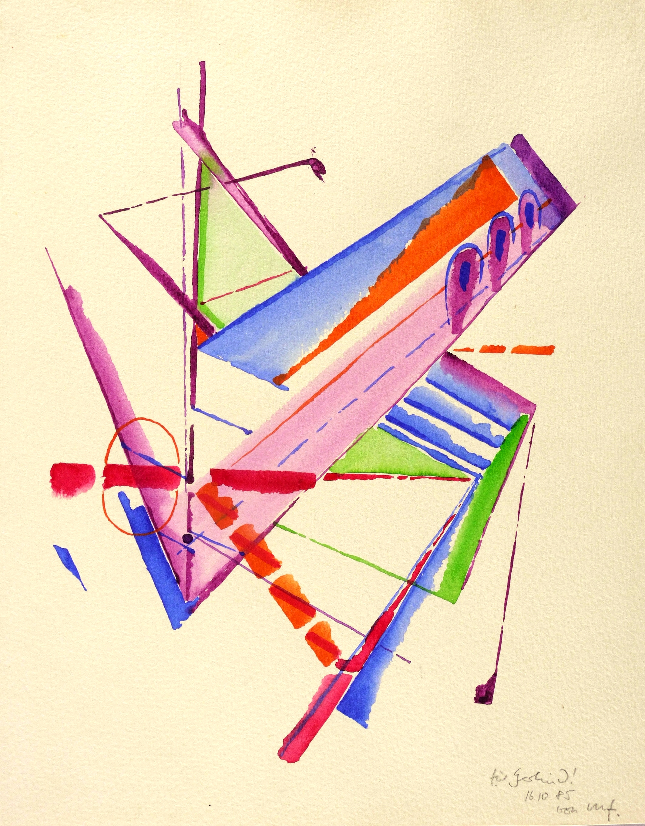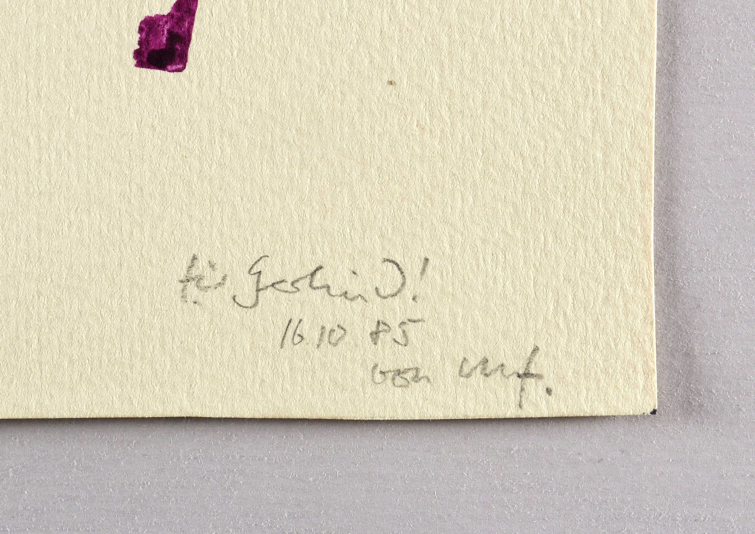 Links unten signiert und datiert: ″16.10.85 von mf″. Dazu Widmung. – Provenienz: Sammlung Gerlint Söder, Dresden. – Sehr guter Zustand.