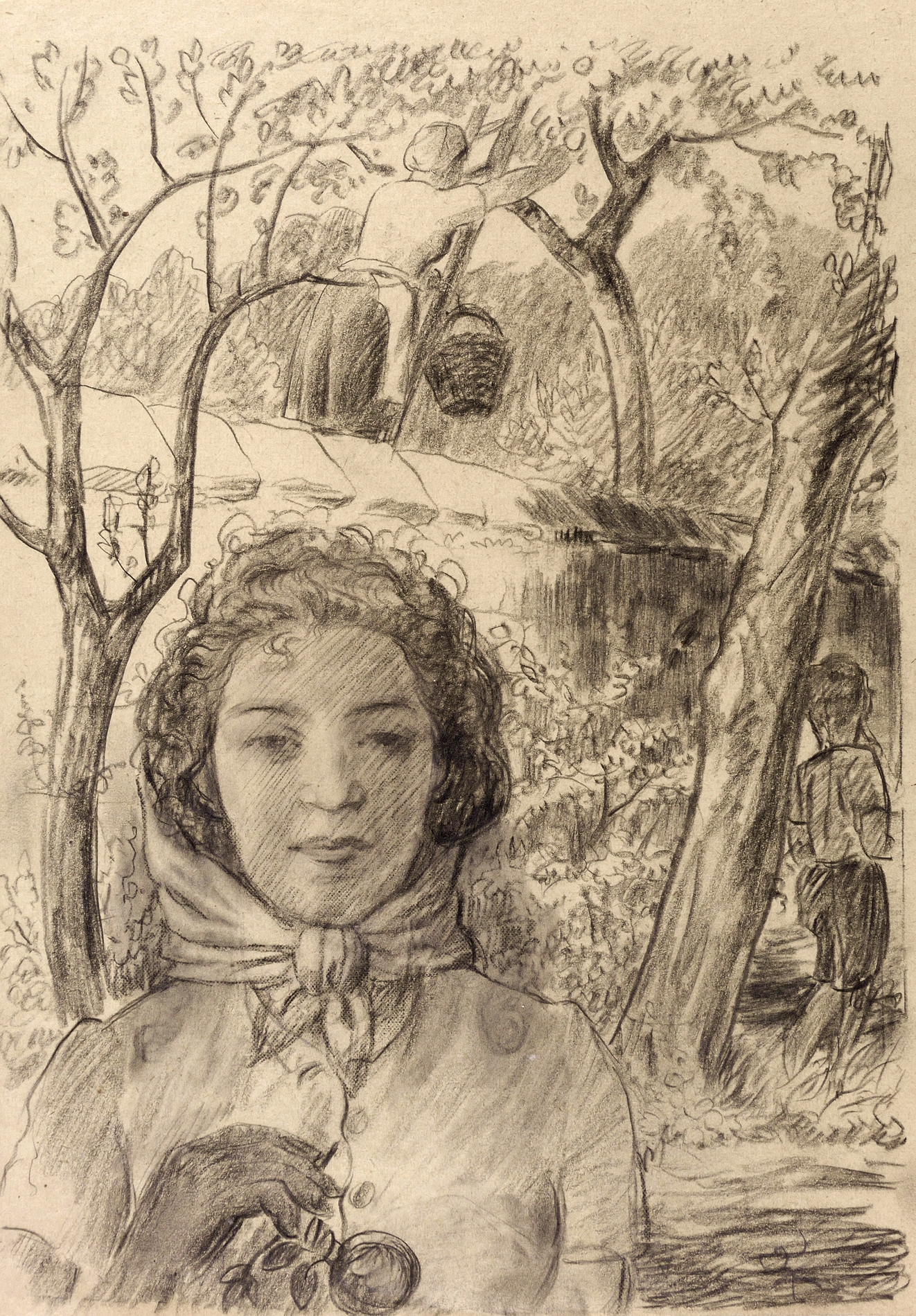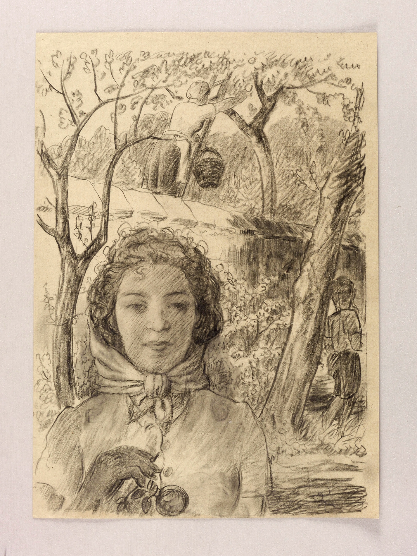 1945-1950. Zeichnung / Kohle, auf leichtem gelbem Velin. – Originale Künstlergrafik, von Karl Enderlein. – Unikat. – 29,7 x 21,0 cm (Darstellung / Blatt).