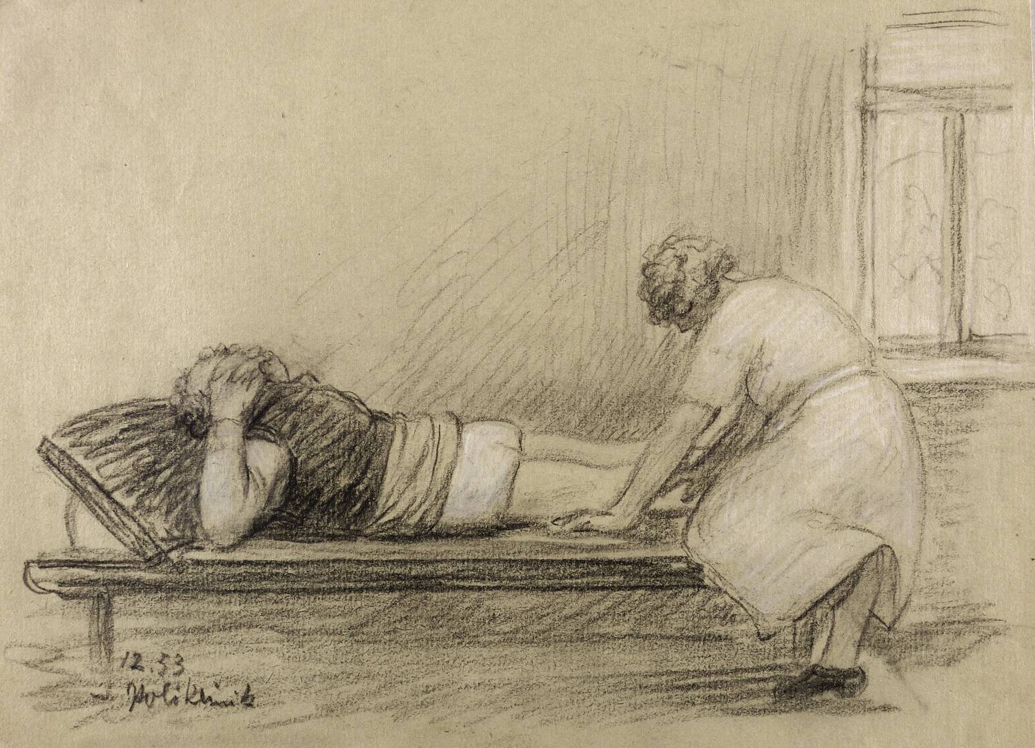 Links unten in der Darstellung bezeichnet: ″12.53 / Poliklinik″. Verso von fremder Hand bezeichnet: ″KARL ENDERLEIN″. – Aus einem größeren Werkkonvolut, das wohl auf den künstlerischen Nachlass von Karl Enderlein zurückgeht. – Provenienz: Sammlung Erhard Frommhold, Dresden. – Sehr guter Zustand.