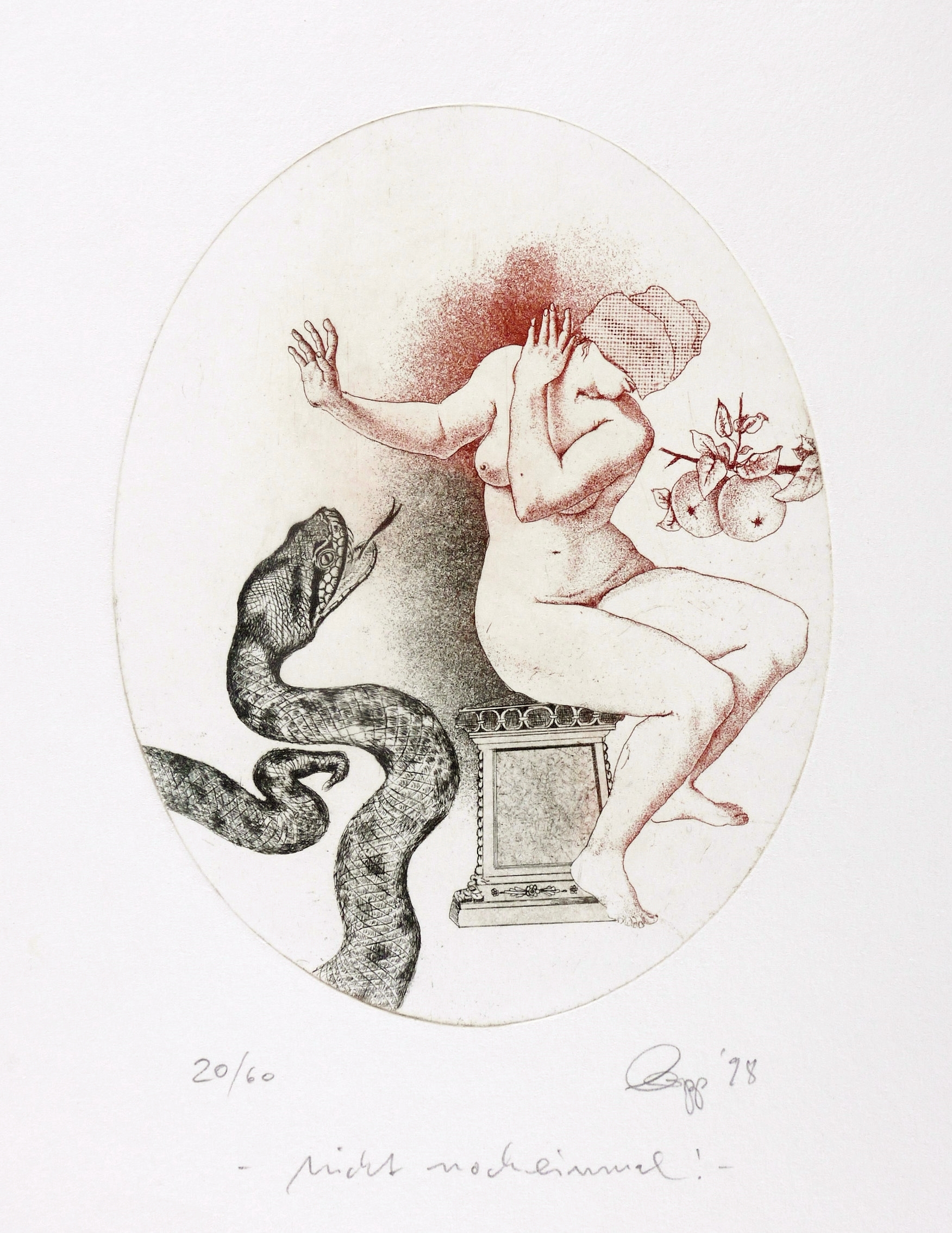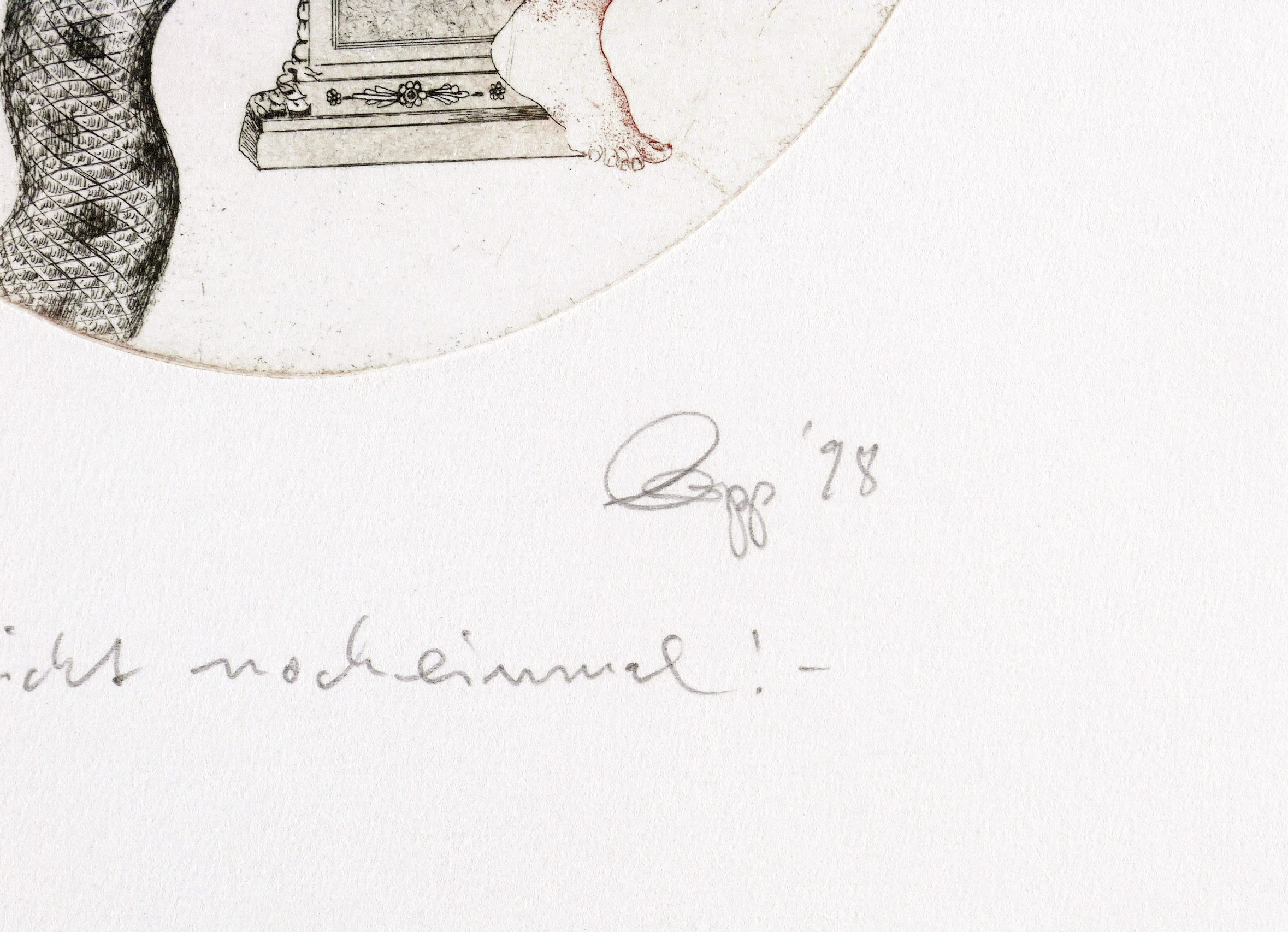 Rechts unten in Bleistift signiert und datiert: ″Gropp 98″. Links Auflagenbezeichnung: ″20/60″. Mittig darunter Titel: ″nicht nocheinmal!″ – Sehr guter Zustand.