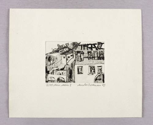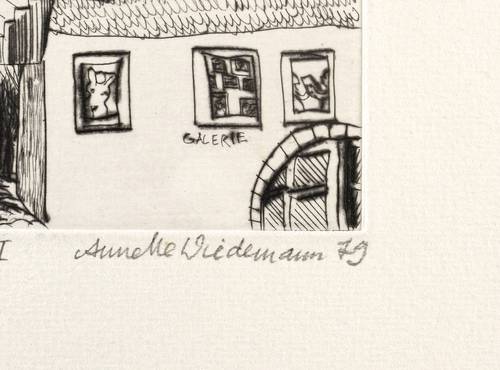 Rechts unten in Bleistift signiert und datiert: ″Annette Wiedemann 79″. Links Auflagenbezeichnung und Titel: ″III (20) Mein Atelier I″. – Sehr guter Zustand.