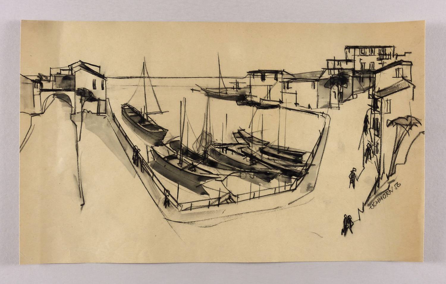 Rechts in Kreide signiert und datiert: ″EICHHORN 1956″. – Papier etwas gewellt. Mäßig guter Zustand.