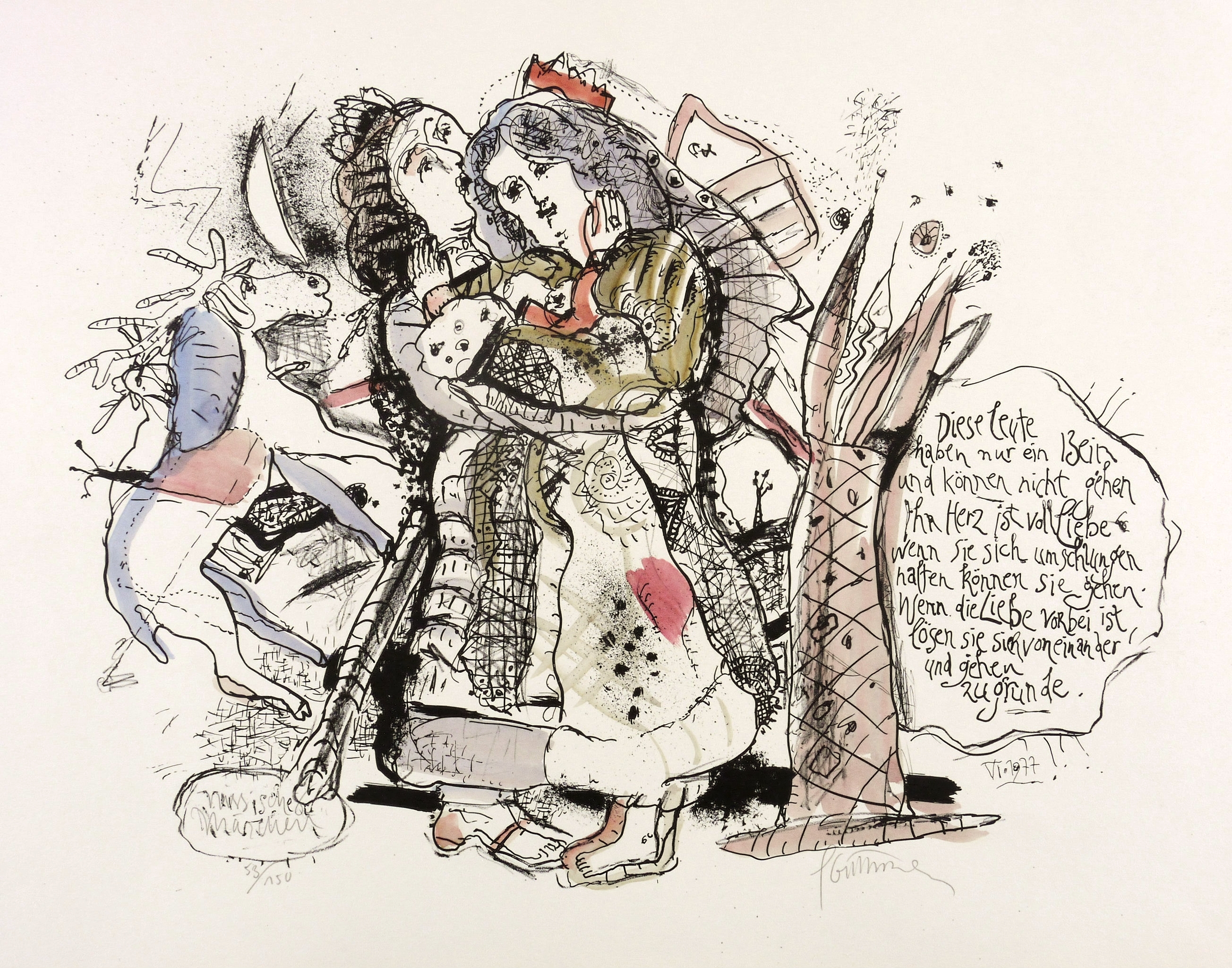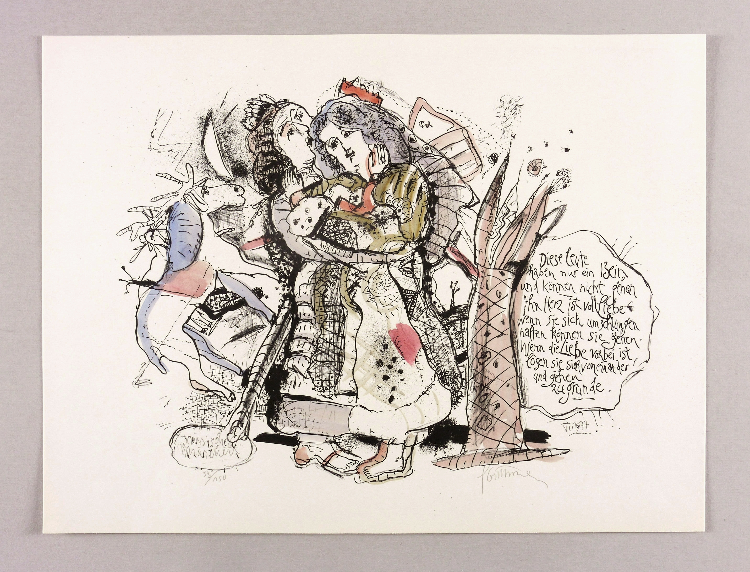 1977. Farboffsetlithografie / Kreide- & Pinsellithografie, in 5 Farben, auf hartem weißem Velinkarton. – Originale Künstlergrafik, von Feliks Büttner. – Auflage Exemplar Nr. 53/150. – 26,2 x 34,8 cm (Darstellung / Druckbild), 32 x 43 cm (Blatt).