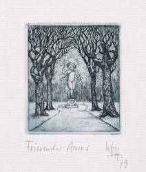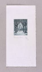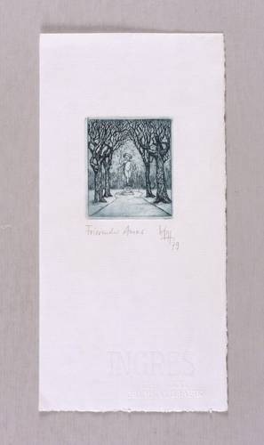 1979. Radierung / Strichätzung, in Schwarzblau, auf feinstem hellchamois Ingres. – Originale Künstlergrafik, von Klaus-Peter Holzhauer. – 5,8 x 4,9 cm (Darstellung / Platte), 21 x 11 cm (Blatt).