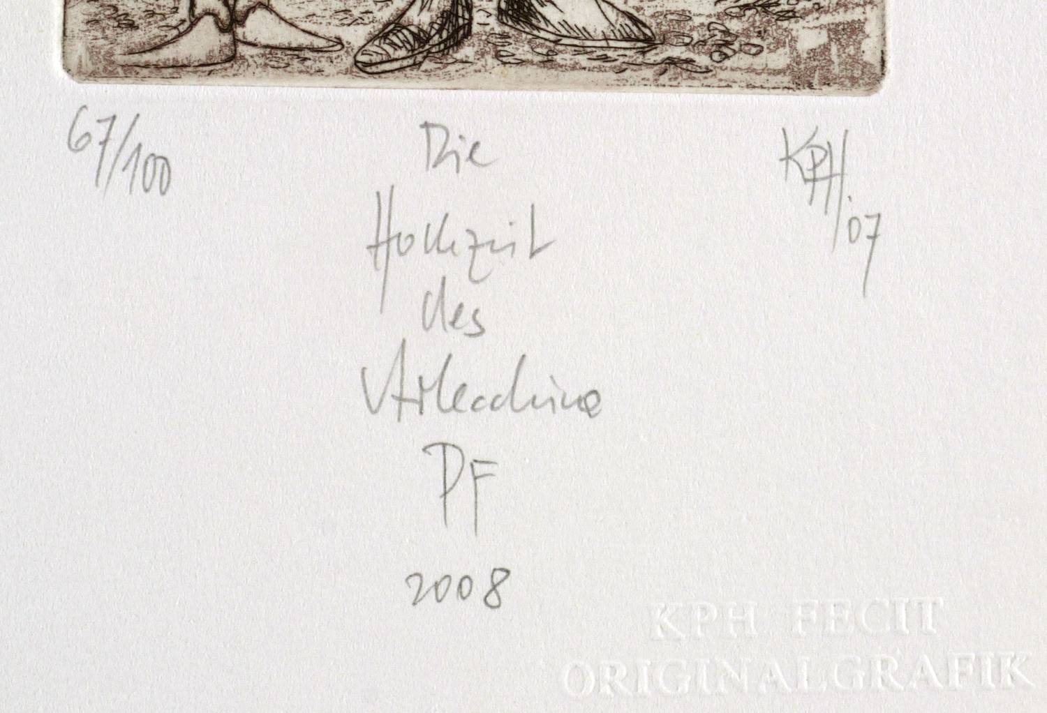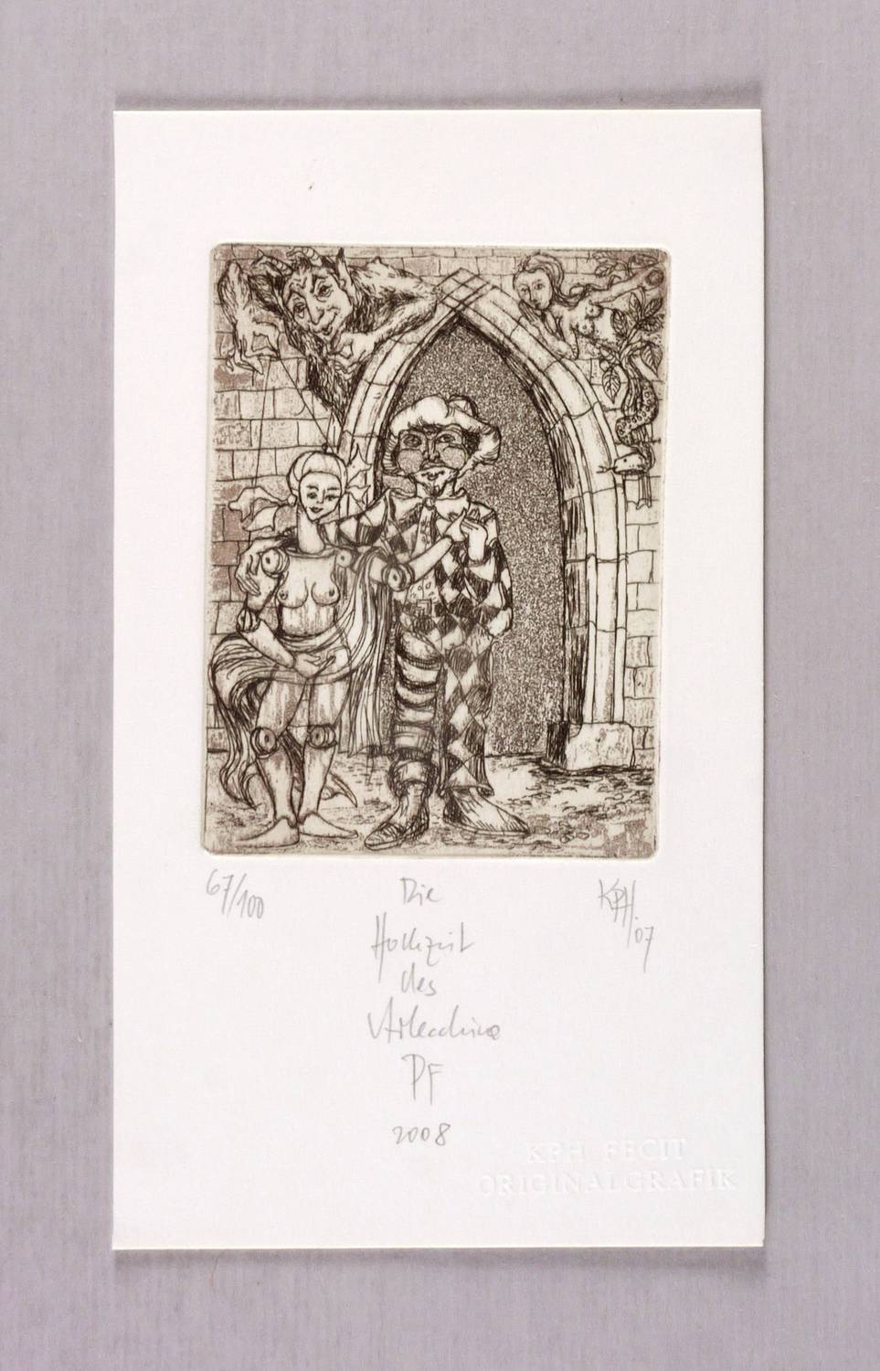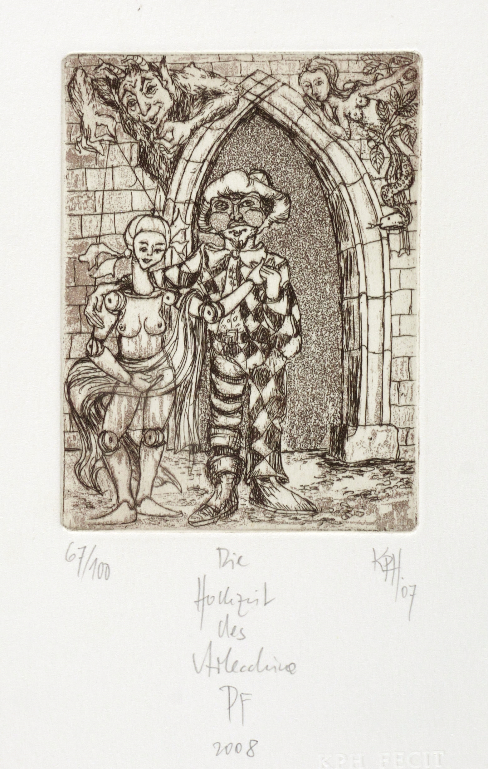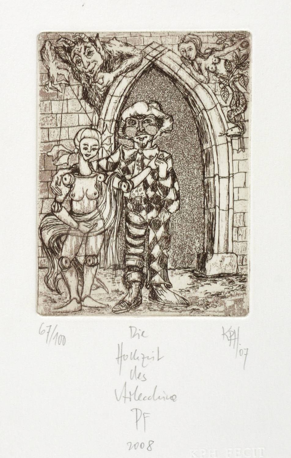 Rechts unten in Bleistift signiert und datiert: ″KPH 07″. Links Auflagenbezeichnung: ″67/100″. Mittig Titel: ″Die Hochzeit des Arlecchino / PF 2008″. Blindstempel des Künstlers. – Sehr guter Zustand.