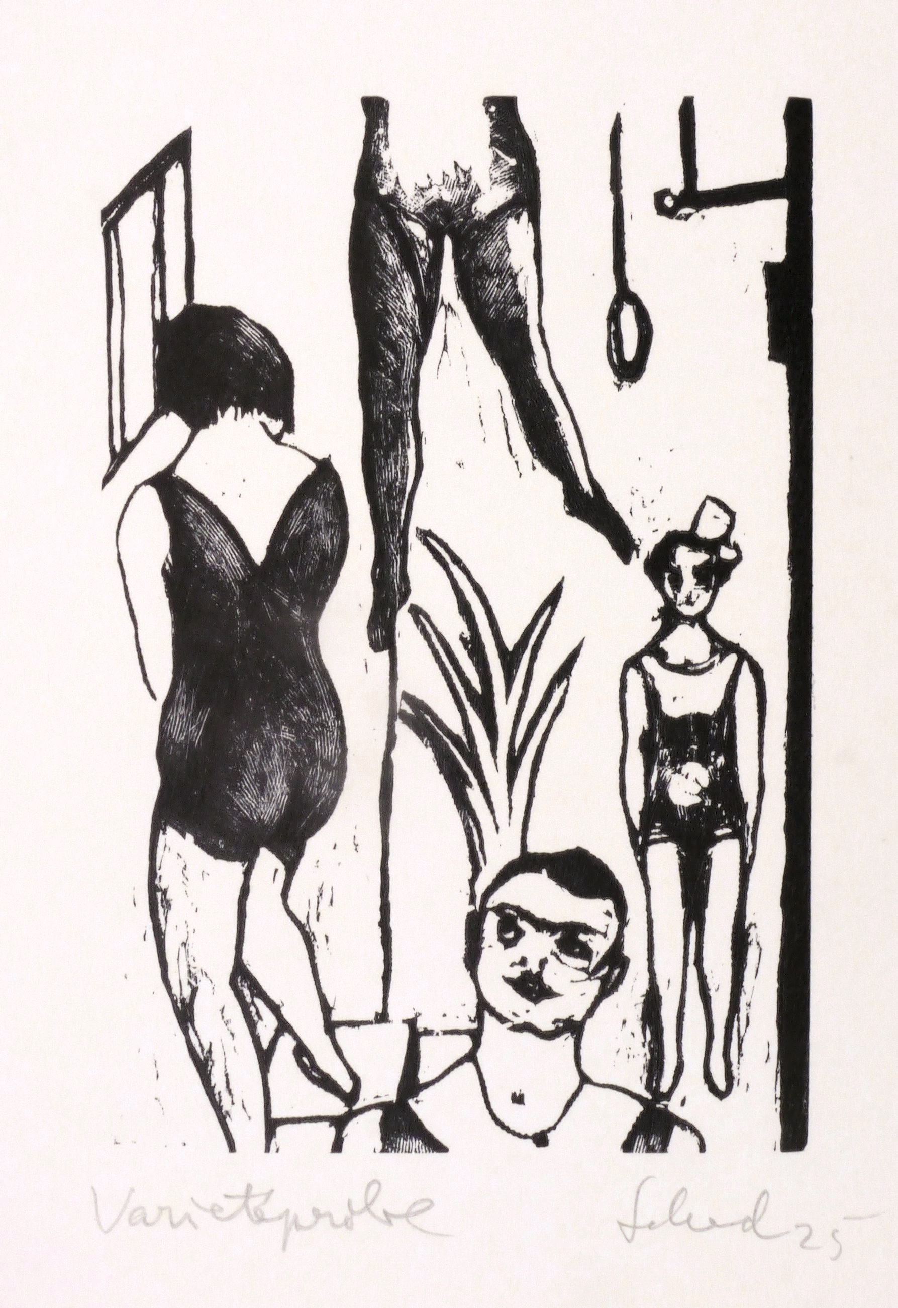 Richter-Swozilek-Violand 35. – Rechts unten in Bleistift signiert und datiert: ″Schad 25″. Links Titel: ″Varietéprobe″. – Ausstellung: 1996 ″Christian Schad. Graphik″ im Vorarlberger Landesmuseum Bregenz (Kat.-Nr. 35, Abb.-Nr. 34). – Tadellos erhalten. Sehr guter Zustand.