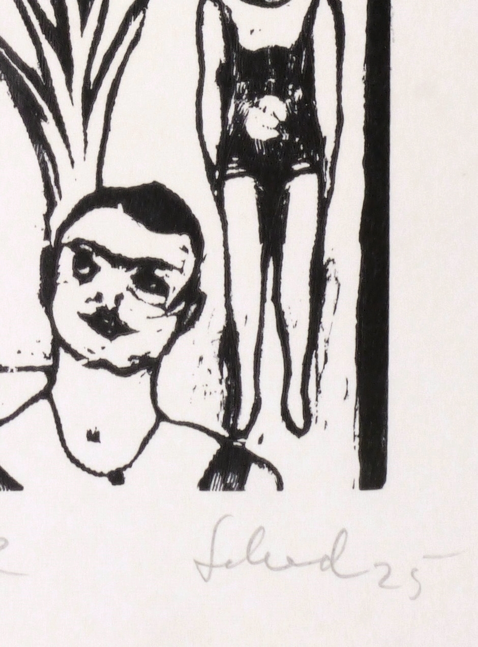 1925. Holzschnitt, in Schwarz, auf glattem weißem Karton. – Originale Künstlergrafik, von Christian Schad. – 15,1 x 10,2 cm (Darstellung / Druckbild), 25 x 18 cm (Blatt).
