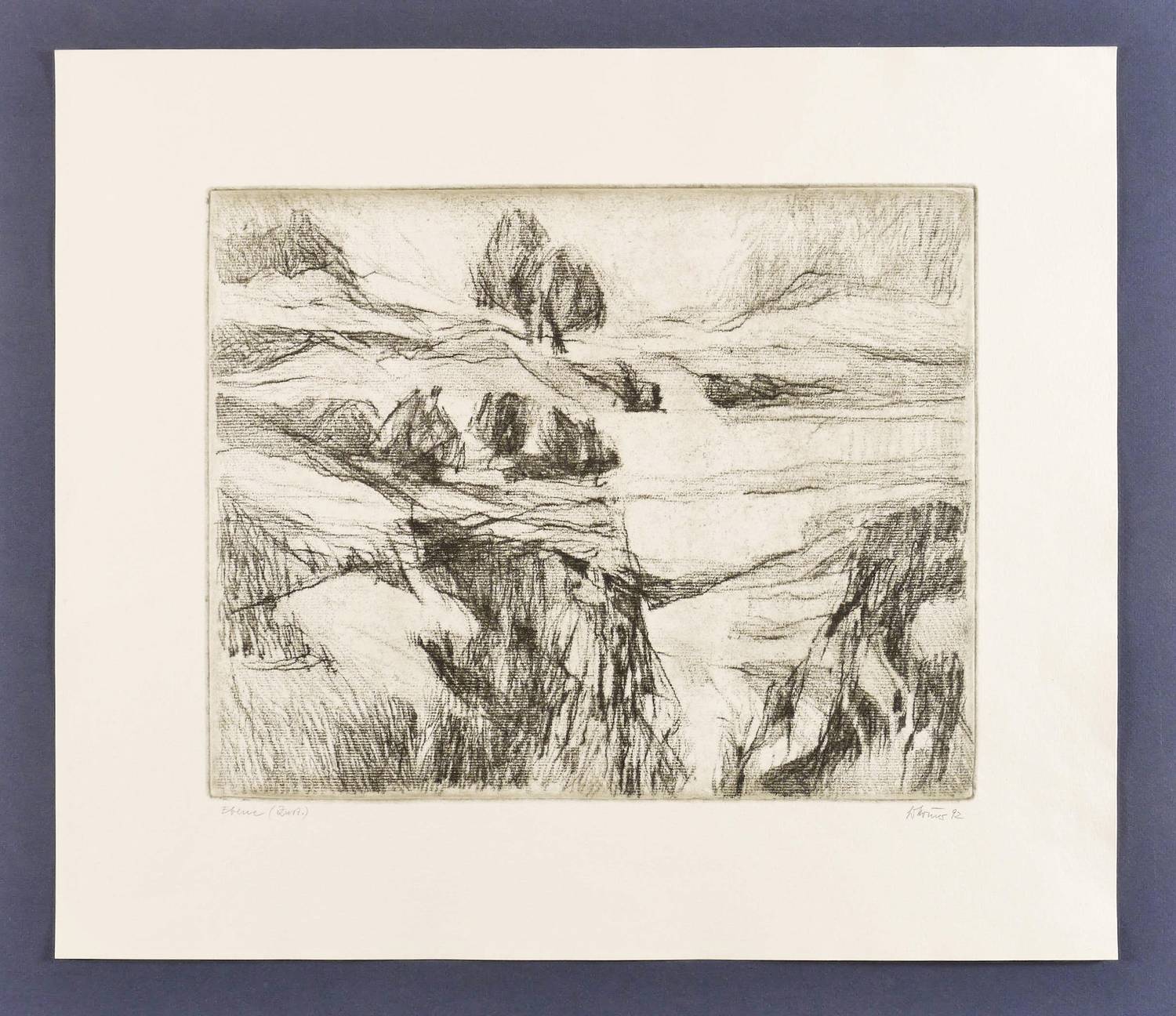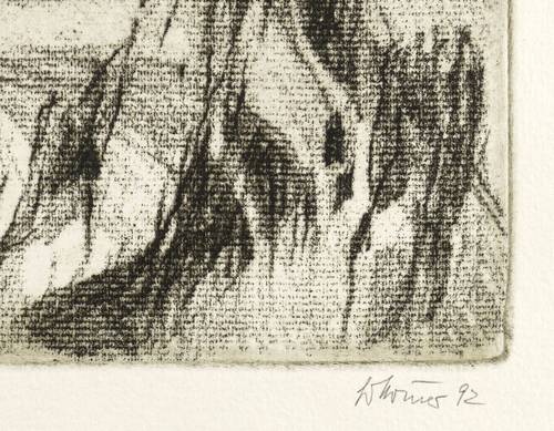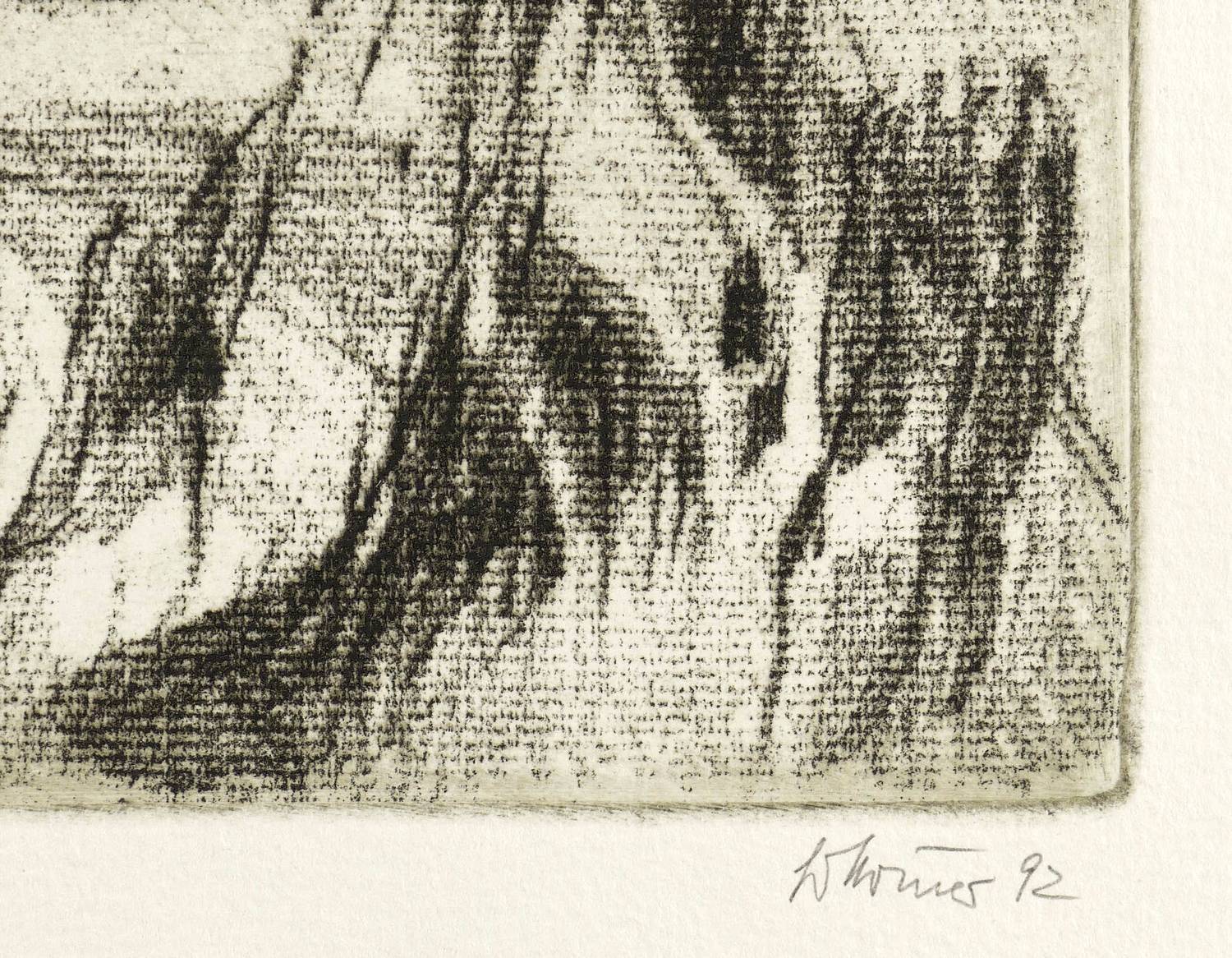 1992. Radierung / Vernis mou, in Schwarz, auf hartem hellchamois Karton. – Originale Künstlergrafik, von Gottfried Körner. – Künstlerexemplar (e.a.). – 27,5 x 34,5 cm (Darstellung / Platte), 41 x 47,5 cm (Blatt).