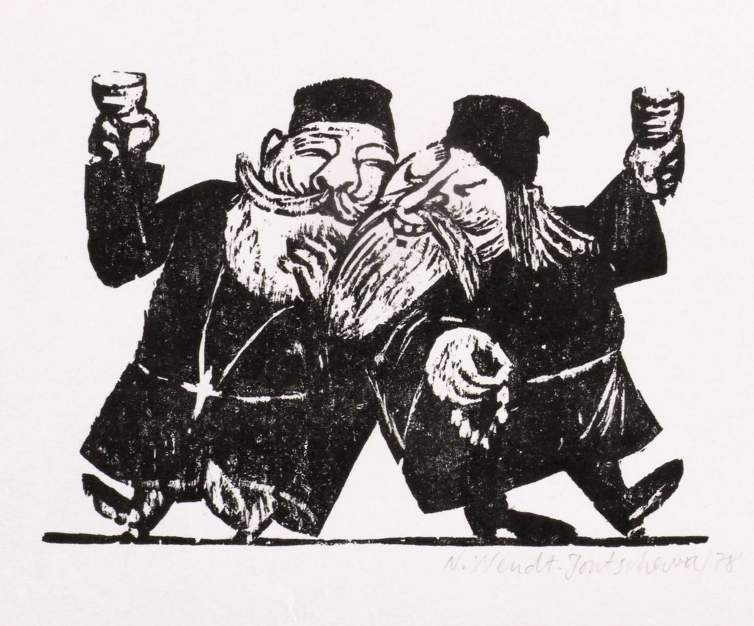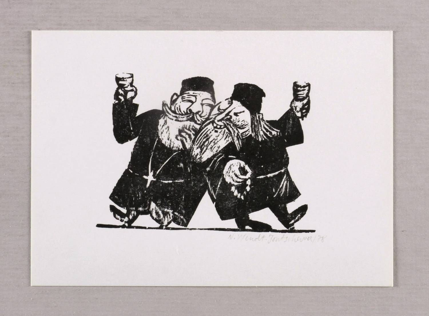 1978. Holzschnitt, in Schwarz, auf glattem hellgelbem Papier. – Originale Künstlergrafik, von Newena Wendt-Jontschewa. – 6,6 x 9,1 cm (Darstellung / Druckbild), 11 x 15 cm (Blatt).