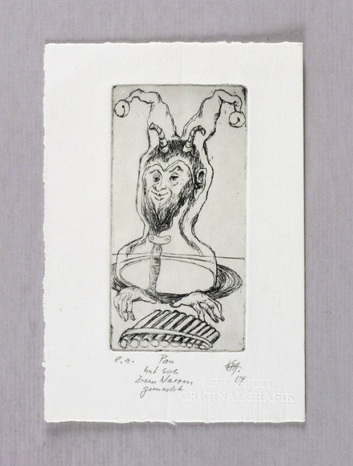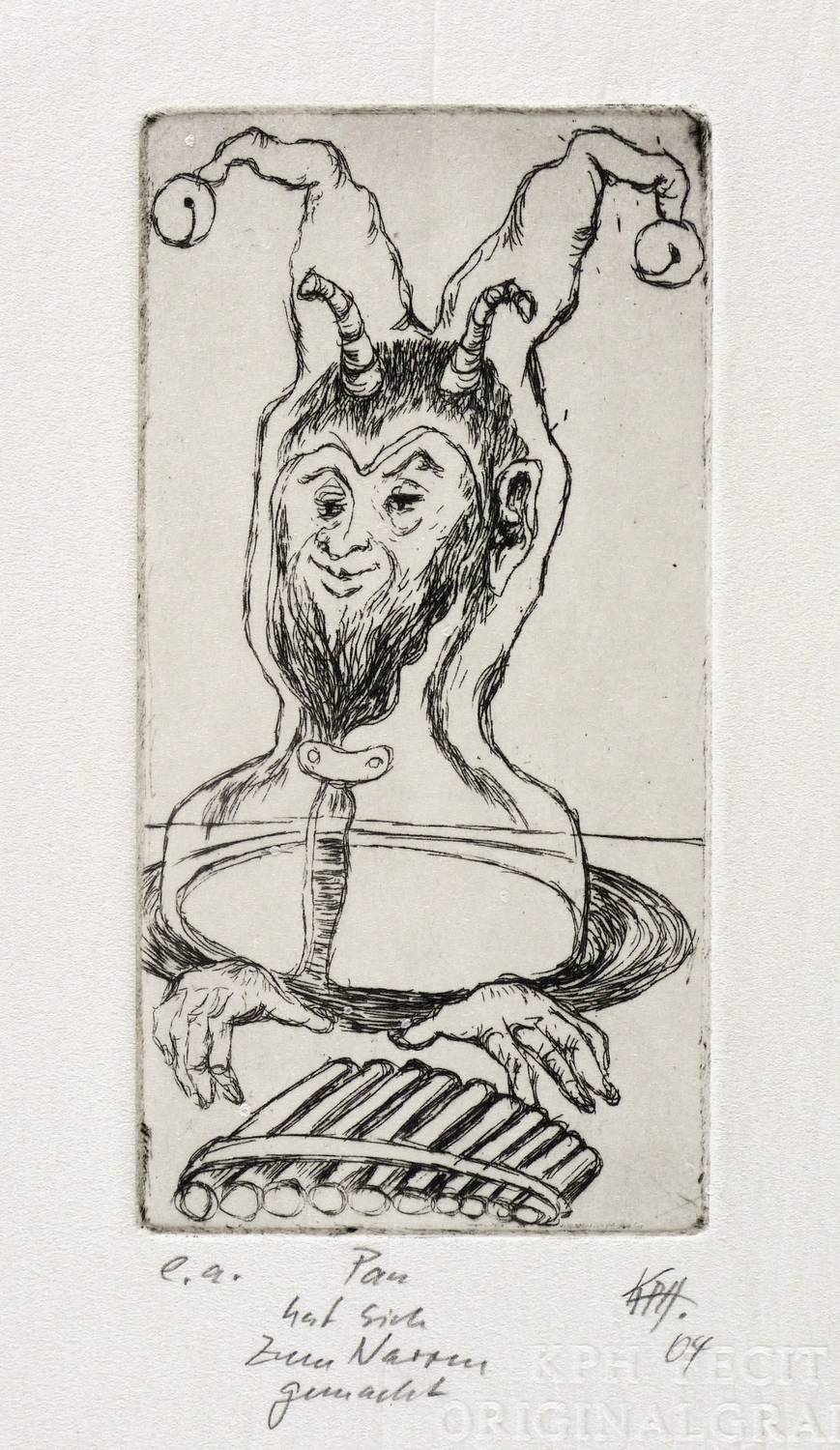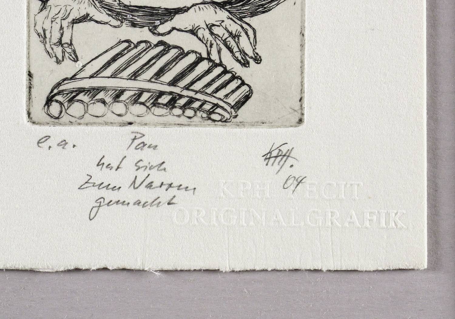 Rechts unten in Bleistift signiert und datiert: ″KPH 04″. Links Auflagenbezeichnung: ″e.a.″ Mittig Titel: ″Pan hat sich zum Narren gemacht″. Blindstempel des Künstlers. – Sehr guter Zustand.