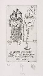2015. Radierung / Strichätzung, in Schwarz, auf hellchamois Velin. – Originale Künstlergrafik, von Klaus-Peter Holzhauer. – Künstlerexemplar (e.a.). – 12,8 x 6,9 cm (Darstellung / Platte), 20 x 11 cm (Blatt).