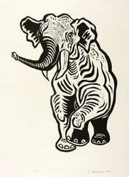 Rechts unten in Bleistift signiert und datiert: ″S. Unbehaun 81″. Links Titel: ″Elefant″. – Sehr guter Zustand.