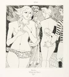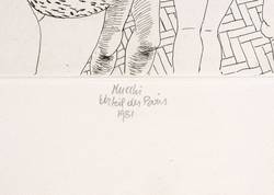 1981. Raderung / Strichätzung, in Schwarz, auf hartem hellchamois Velin. – Originale Künstlergrafik, von Gabriele Mucchi. – Auflage Exemplar Nr. 9/200. – 23,8 x 22,0 cm (Darstellung / Platte), 40 x 37 cm (Blatt).