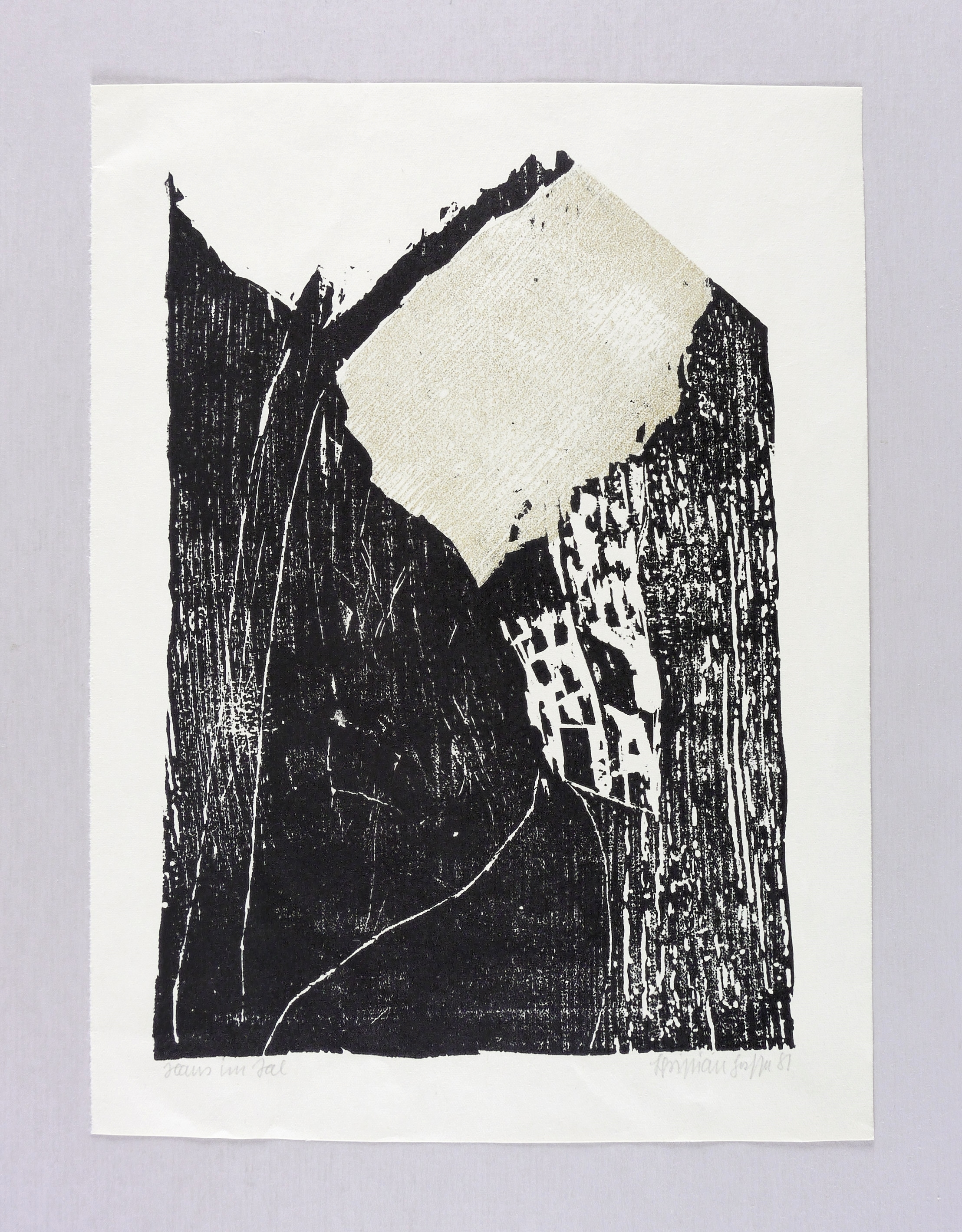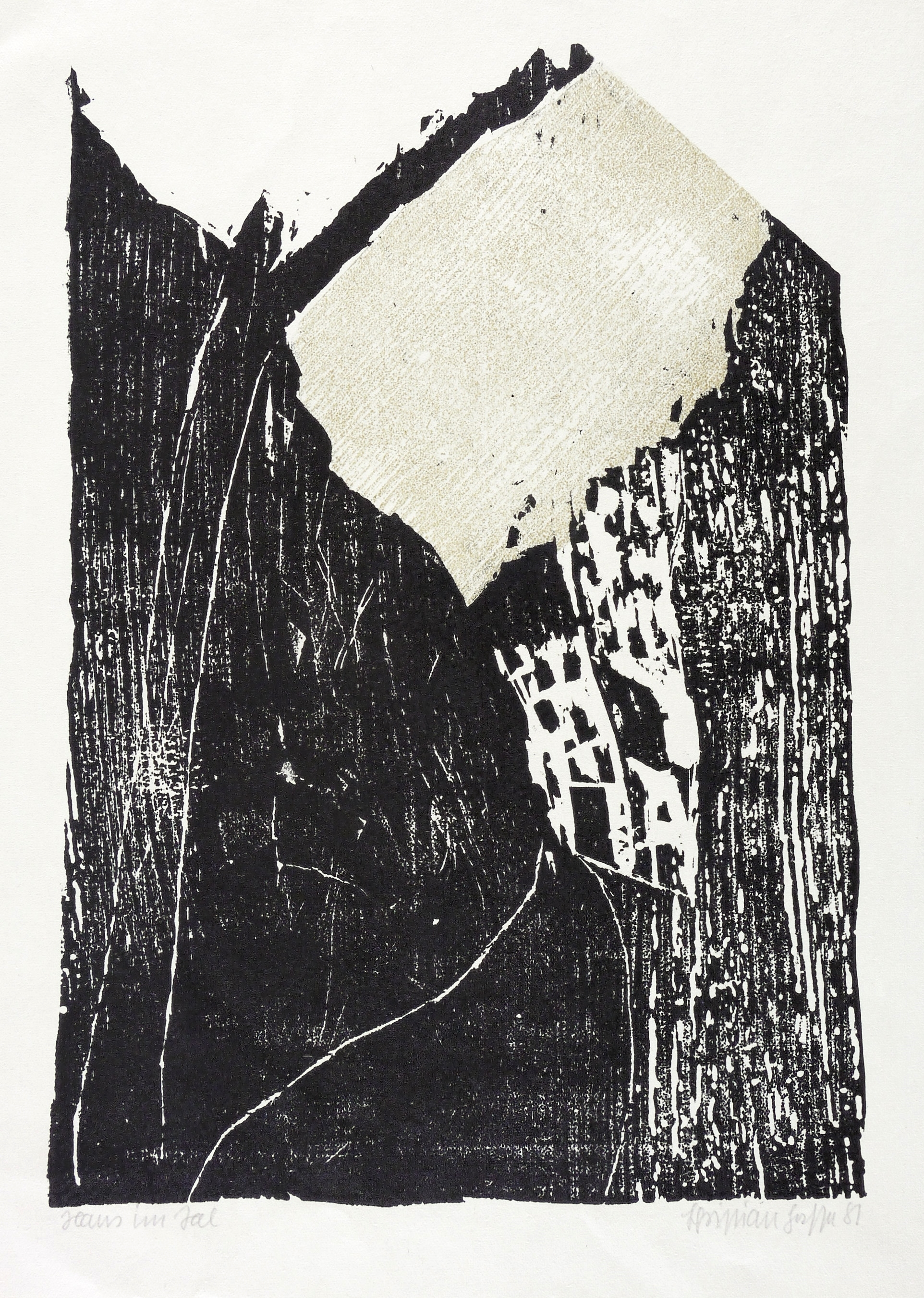 Rechts unten in Bleistift signiert und datiert: ″Christian Hasse 81″. Links Titel: ″Haus im Tal″. – Provenienz: Sammlung Gerlint Söder und Erhard Frommhold, Dresden. – Tadellos erhalten. Sehr guter Zustand.
